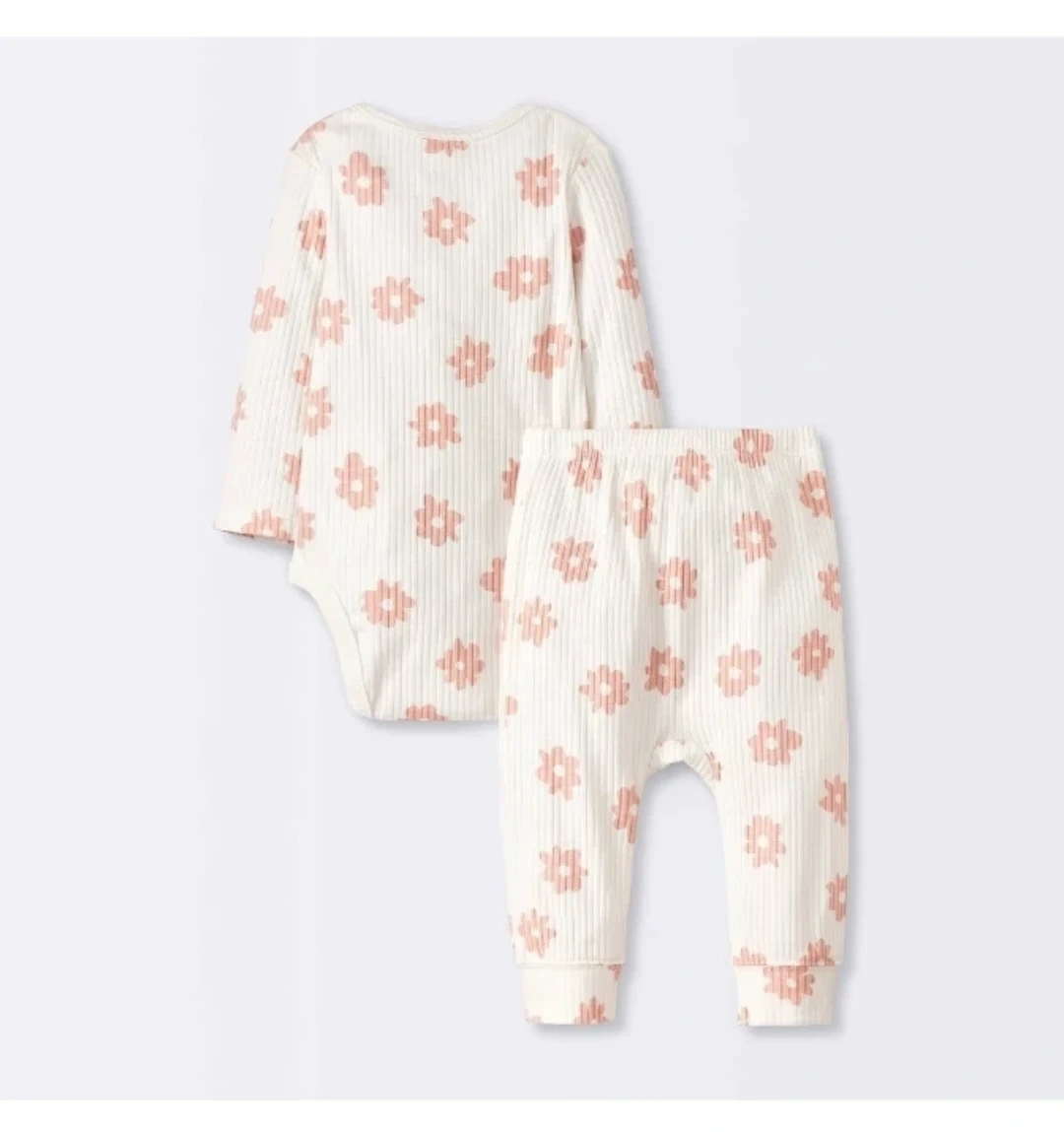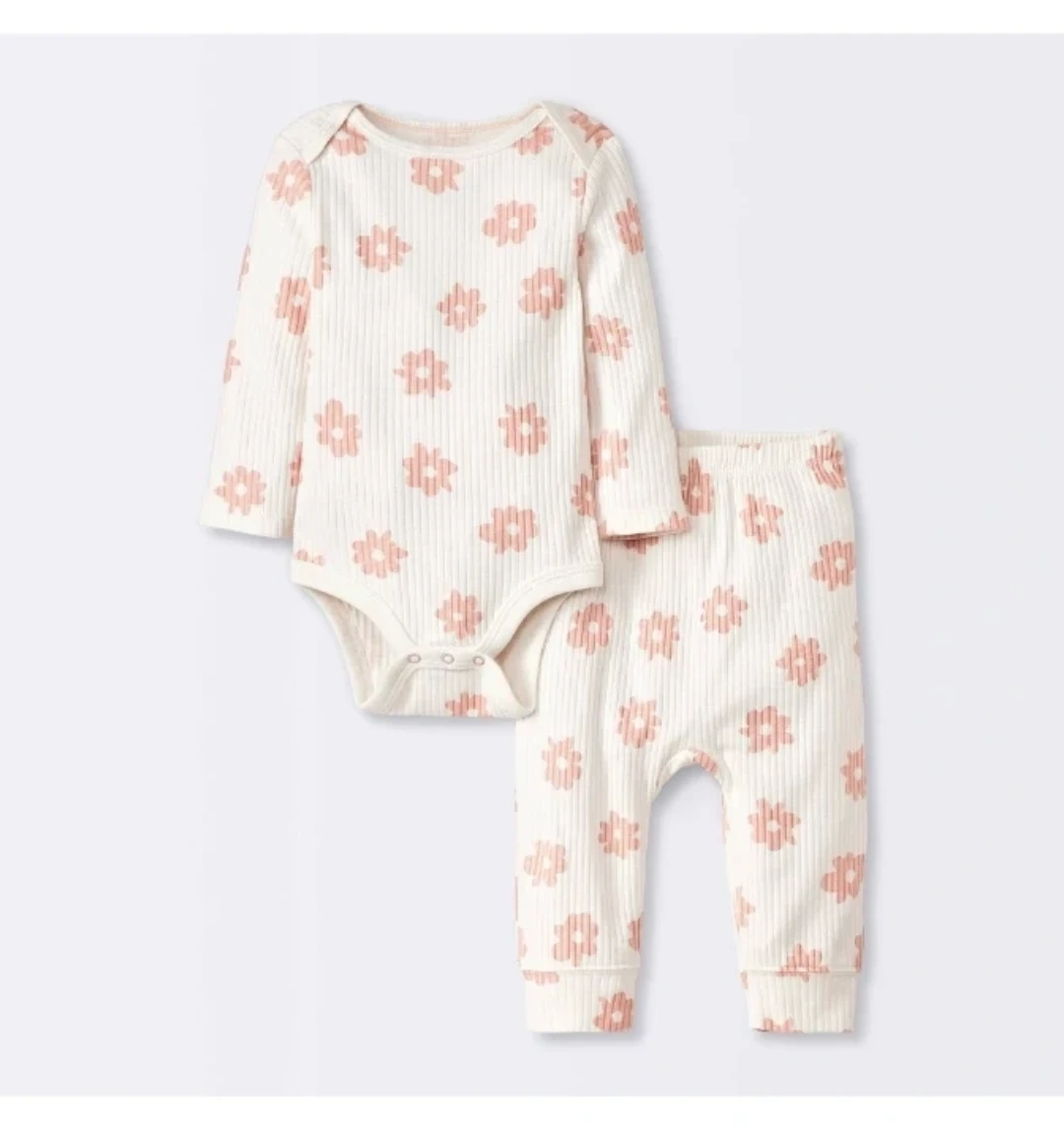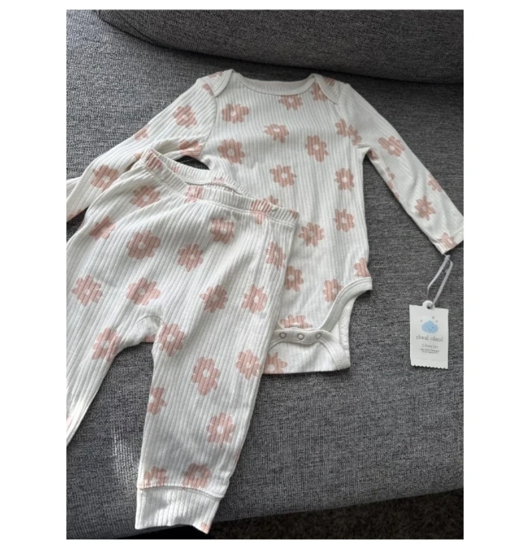 81This adorable Cloud Island toddler outfit is brand new with tags! It features a cute floral pattern on a soft, ribbed material. The set includes a long-sleeved bodysuit and matching pants, perfect for keeping your little one comfy and stylish.