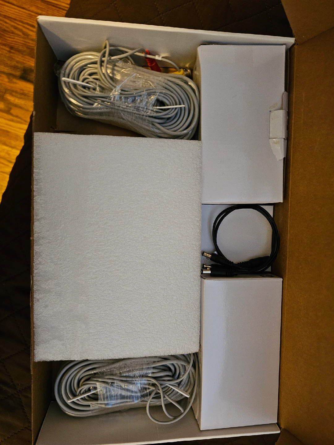 Selling a brand new set of CM-4PK-PIRHDA10W-BU 4-PK HD Analog 1080p PIR Bullet Cameras. The item is in its original packaging and includes all components, ensuring a complete and ready-to-use setup