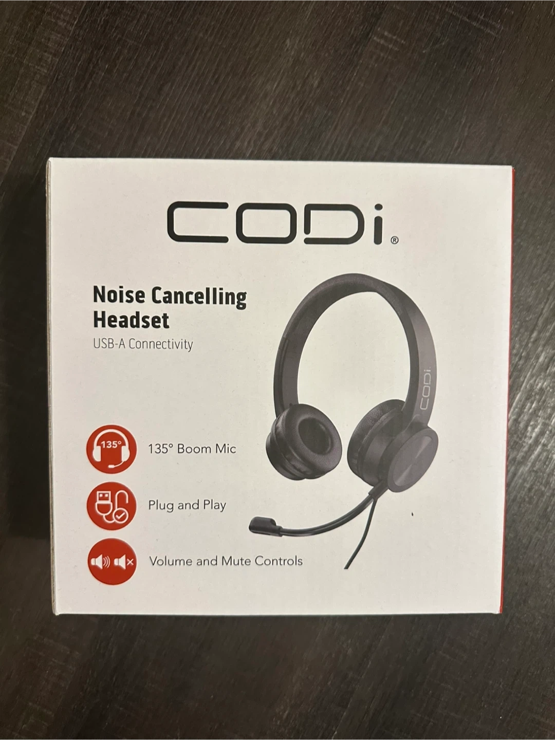Selling a brand new Codi Noise Cancelling Headset with USB-A connectivity! It features a 135° boom mic, plug-and-play functionality, and volume and mute controls. Great for clear communication in any setting