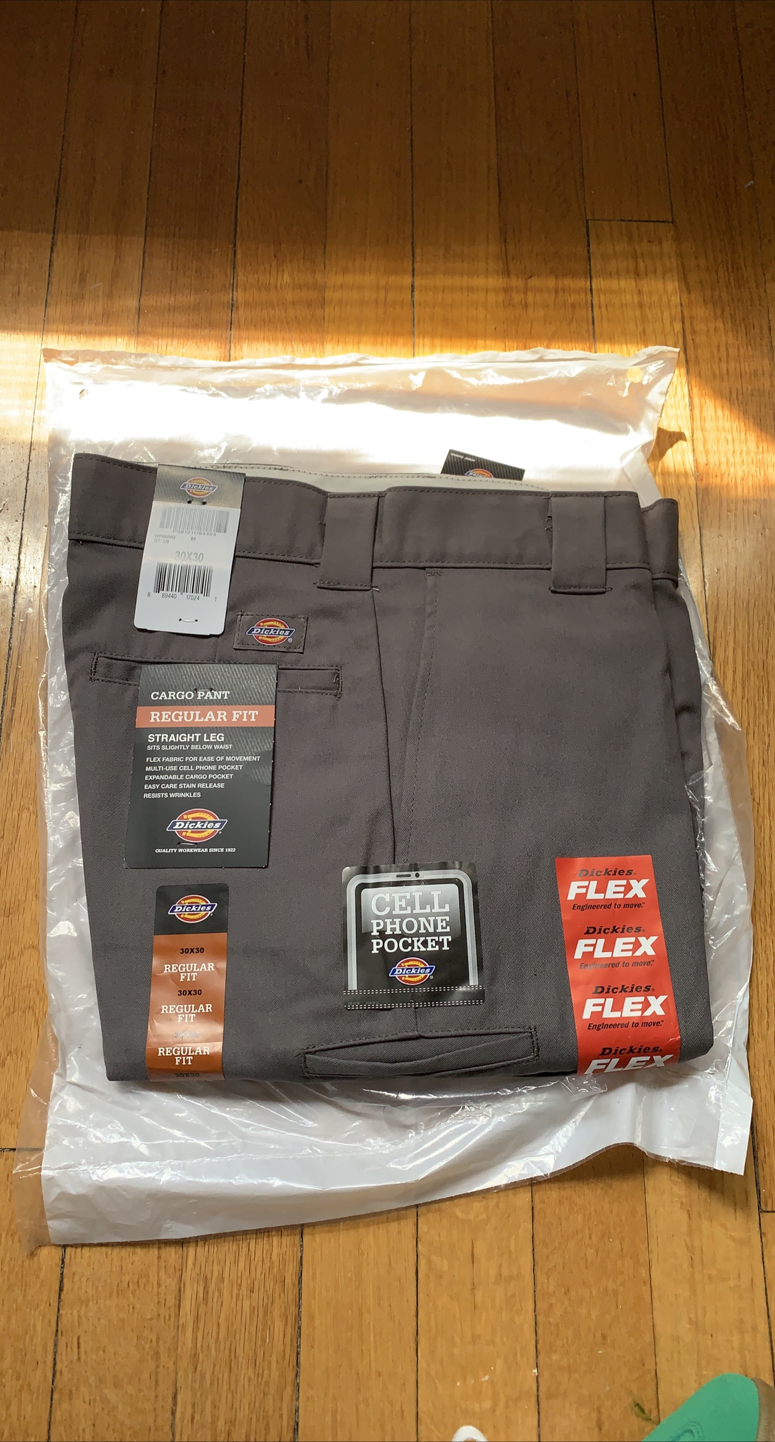 52These are brand new Dickies FLEX regular fit cargo pants in size 30x30! They have a straight leg and sit slightly below the waist. The flex fabric allows for ease of movement, and they feature a multi-use cell phone pocket and expandable cargo pocket. They're also designed for easy care with stain release and wrinkle resistance