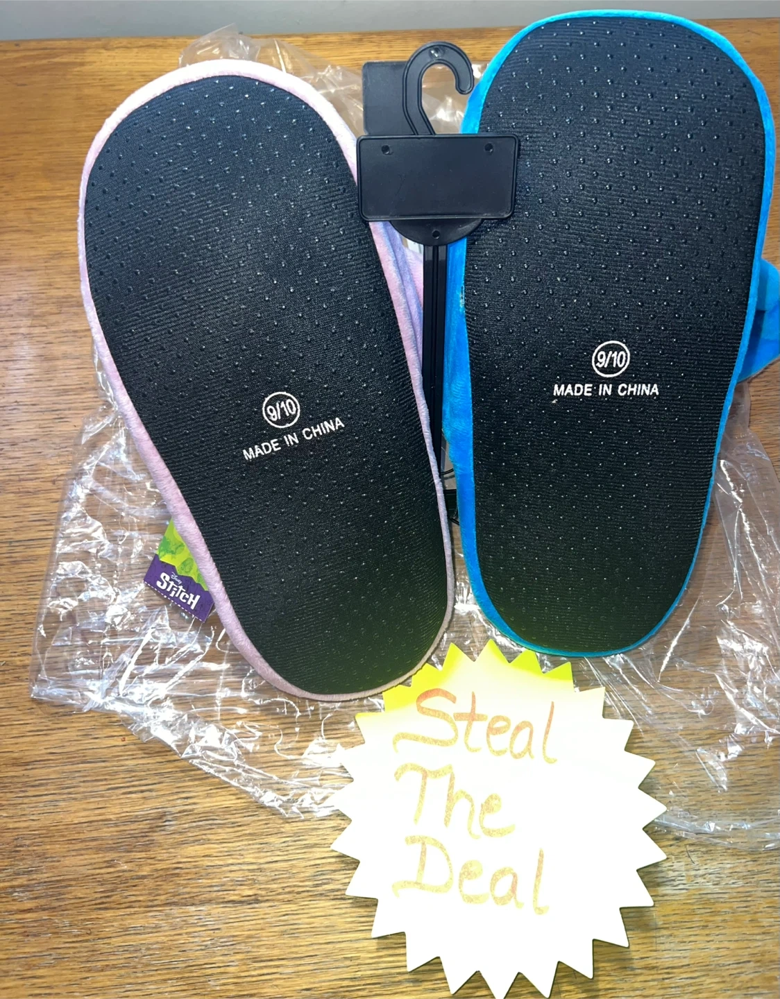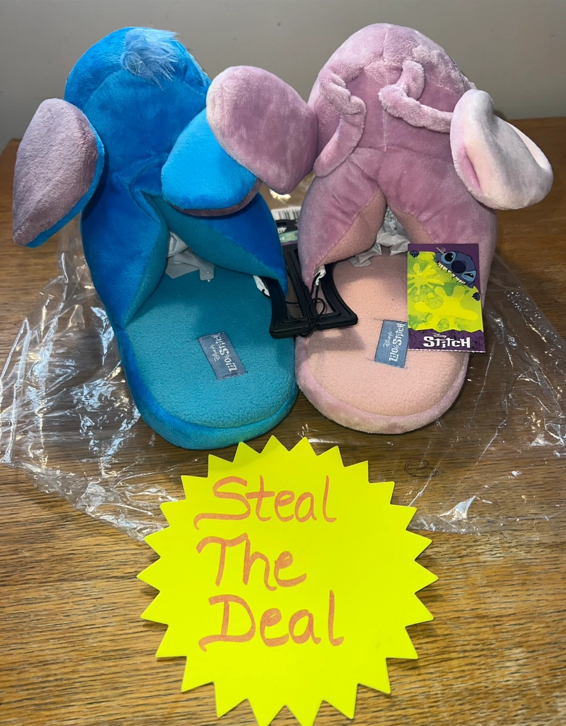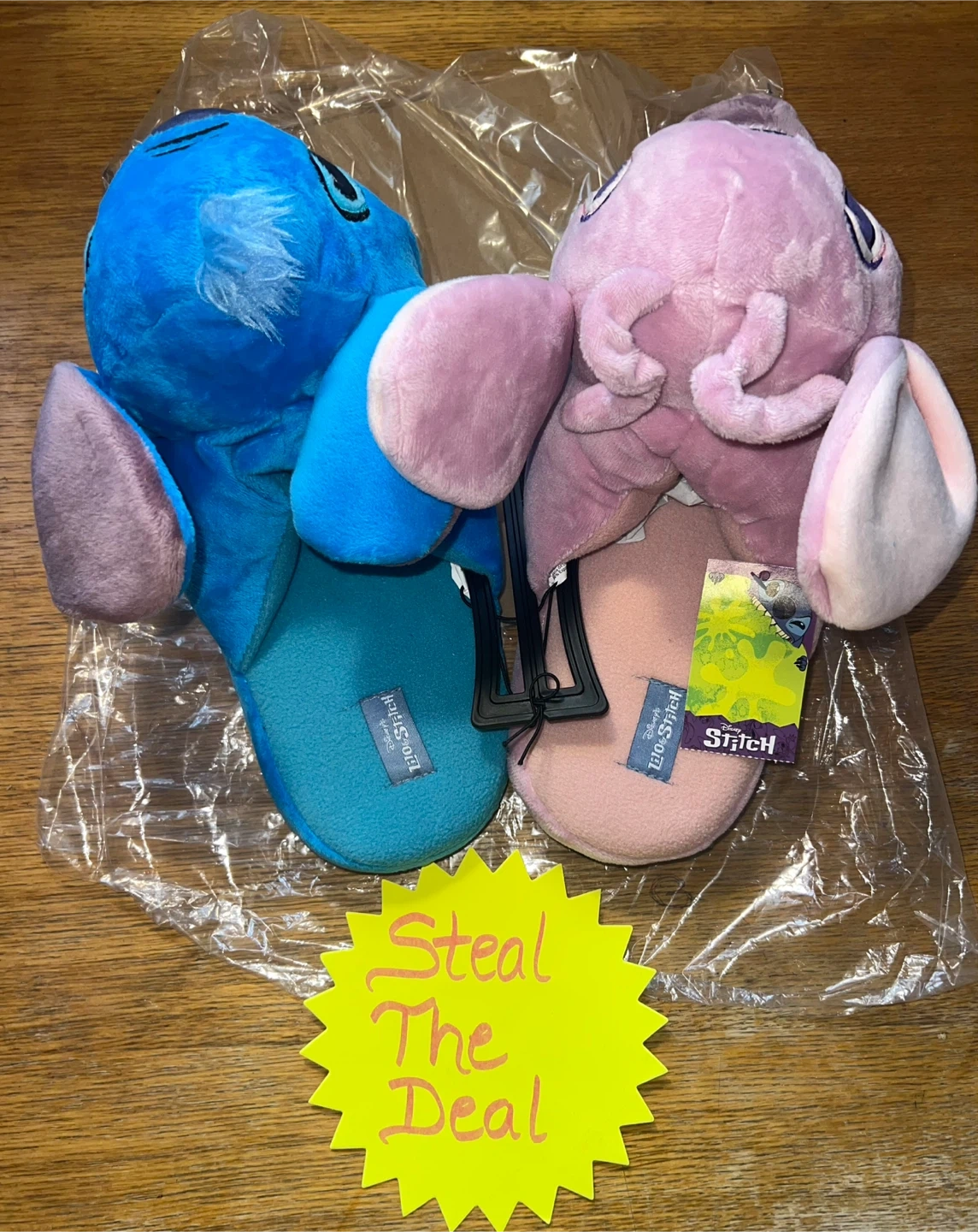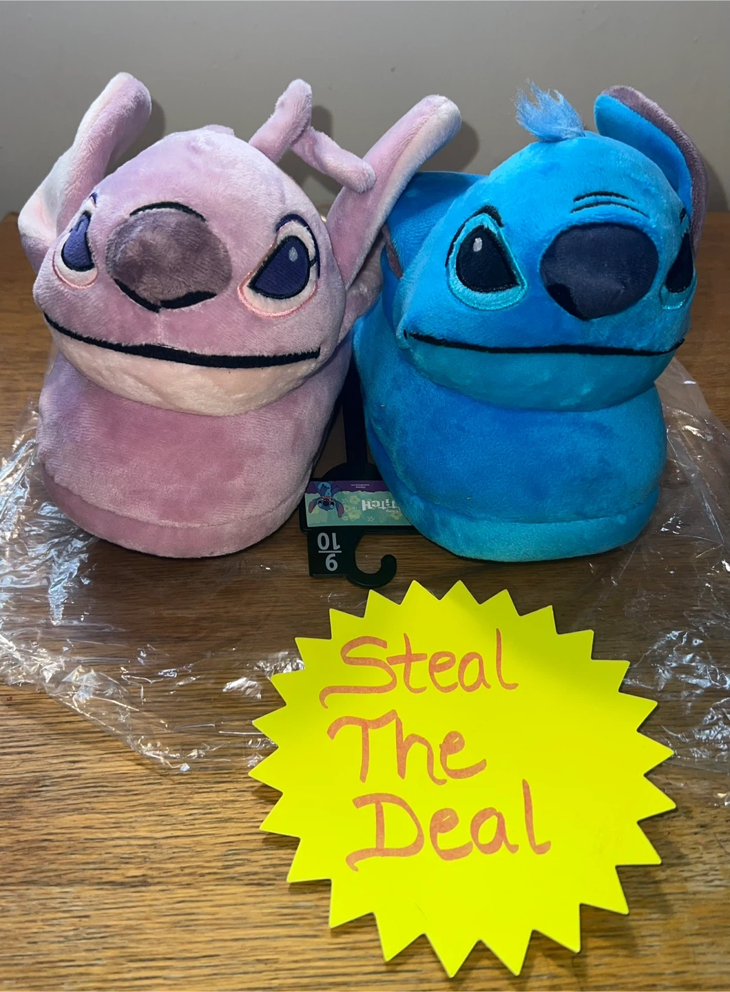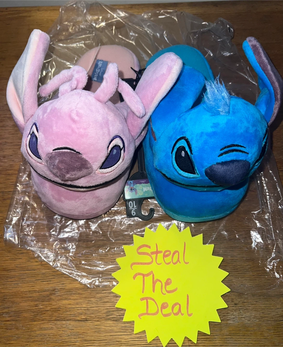 These adorable Disney Stitch and Angel slippers are brand new and ready to keep your feet cozy! They come in a size 9/10 and feature the beloved characters Stitch (blue) and Angel (pink). Perfect for any Disney fan! ADULT SIZE