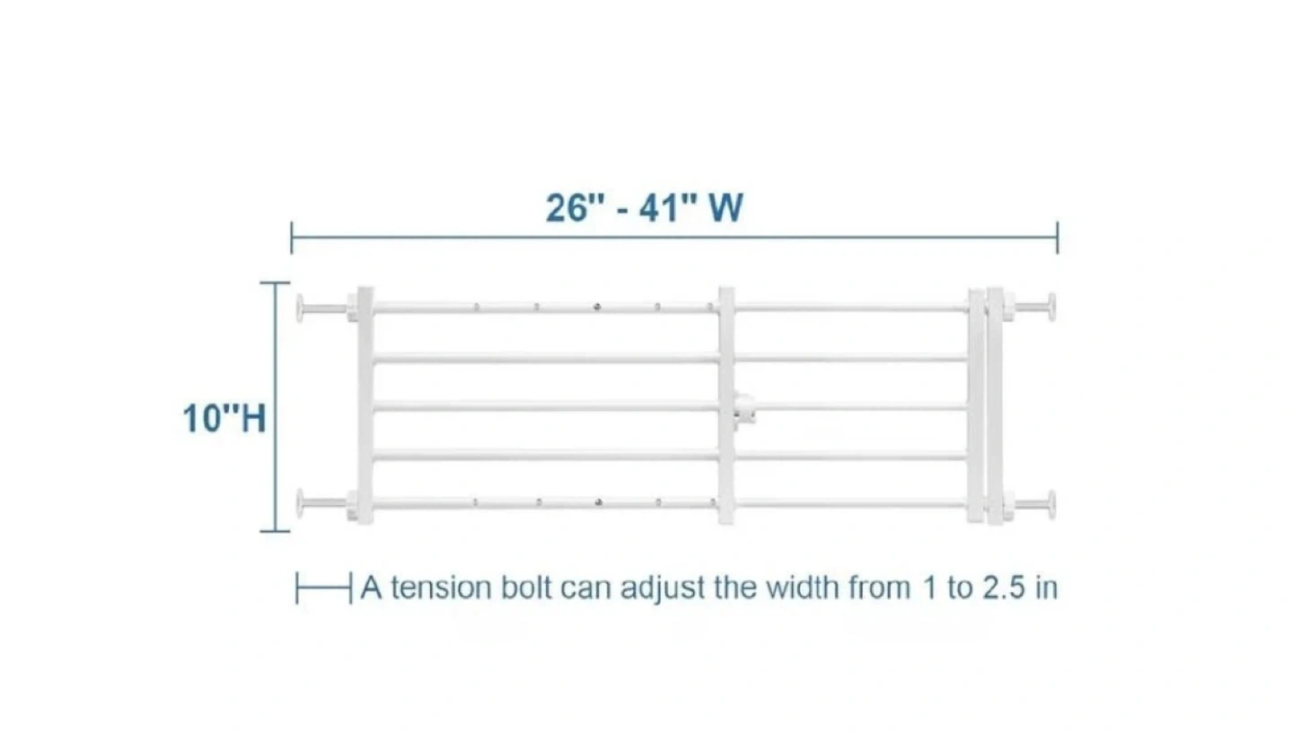 10Dog Pet Gate Step over with Door 10" Tall New, Open Box 26" to 41" Wide.