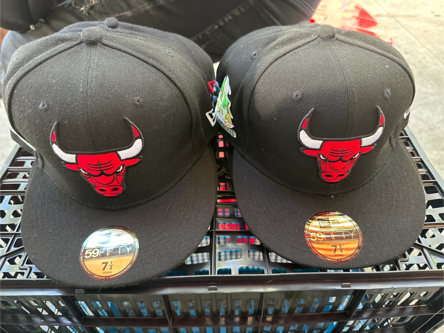 I'm selling a New Era Chicago Bulls 59FIFTY fitted hat It's black with the Bulls logo on the front. There are some signs of wear.