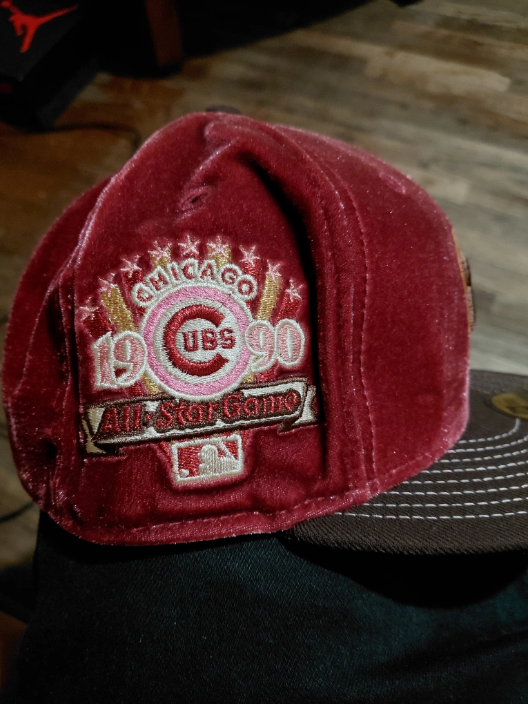 60Selling a New Era Chicago Cubs hat, commemorating the 1990 All-Star Game! It's a size 7 and features a unique velvet material and color.