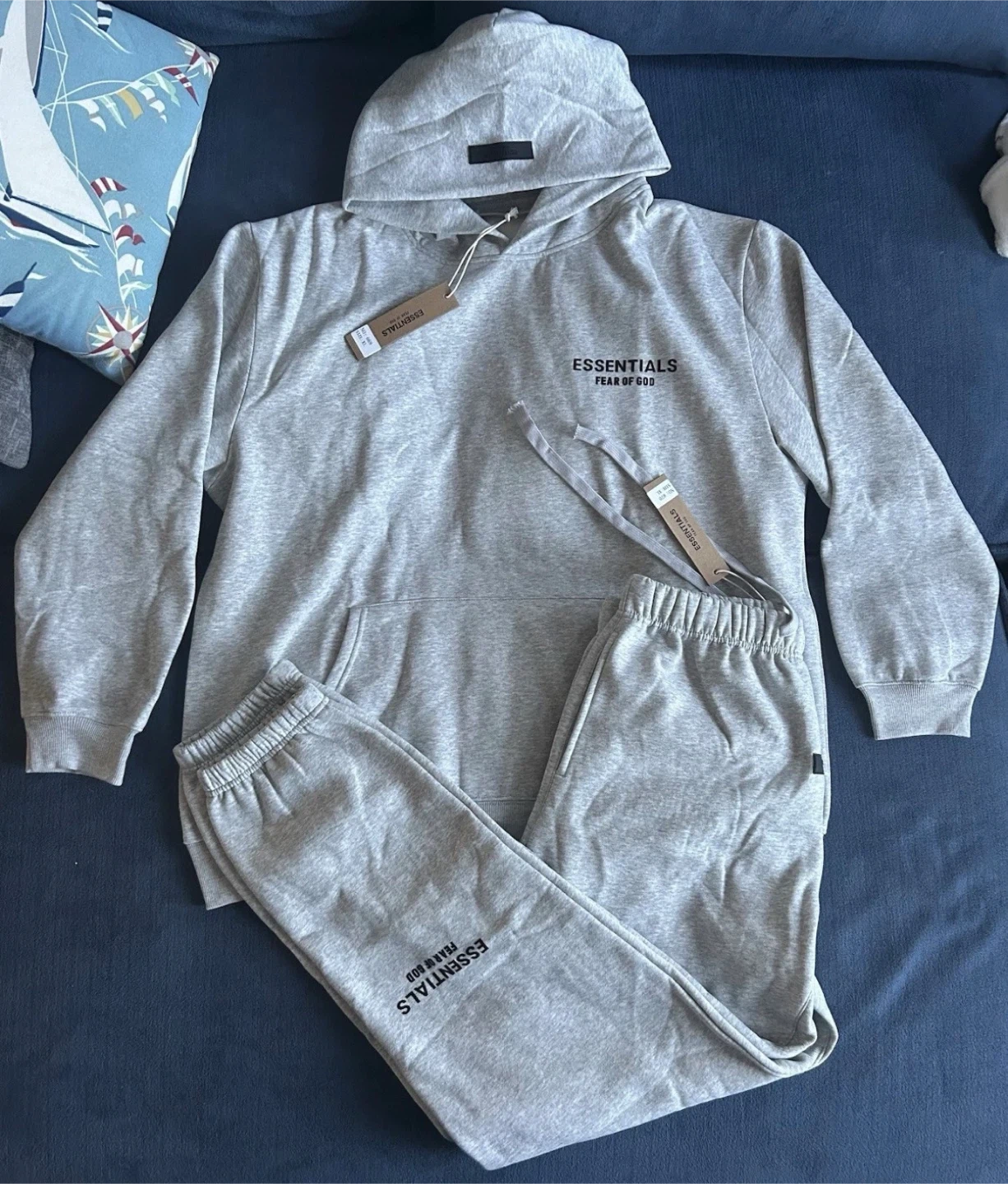 170-Brand new Essentials Fear of God full set size L - The set includes both the hoodie and the sweatpants - Perfect for a comfy and stylish look. - The material is soft and high-quality, ensuring a comfortable fit.