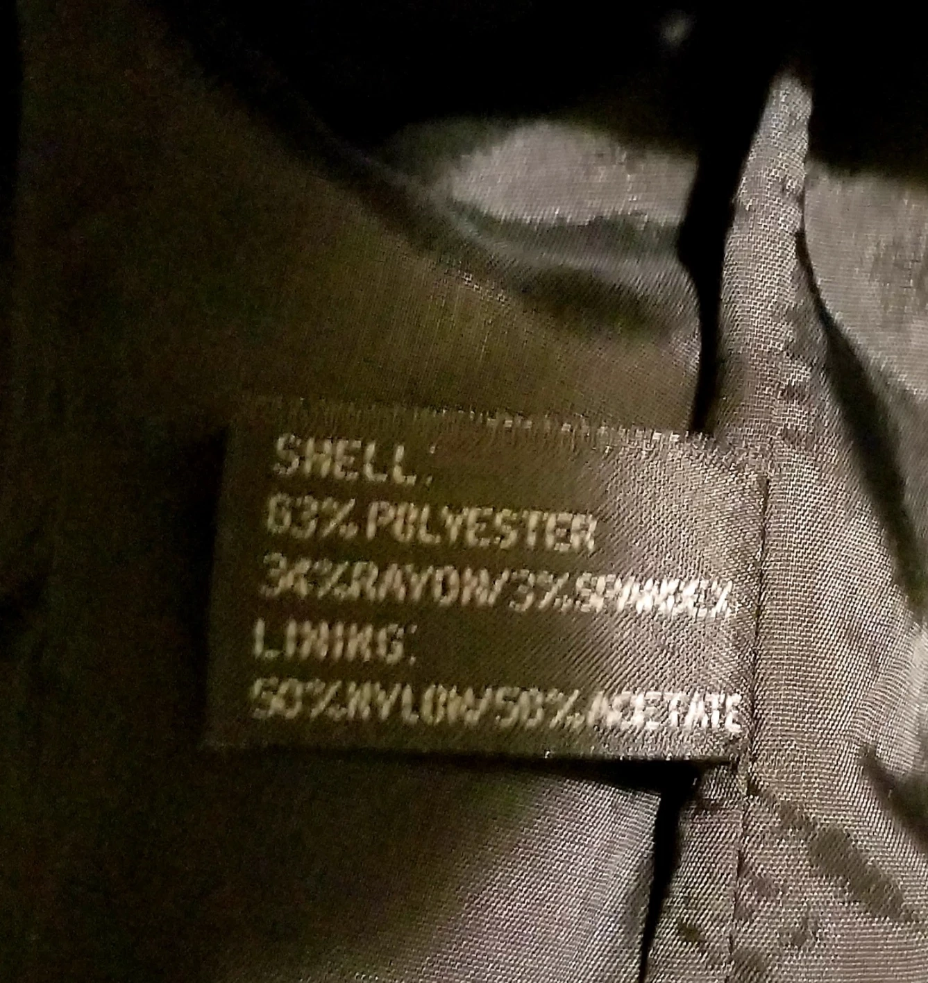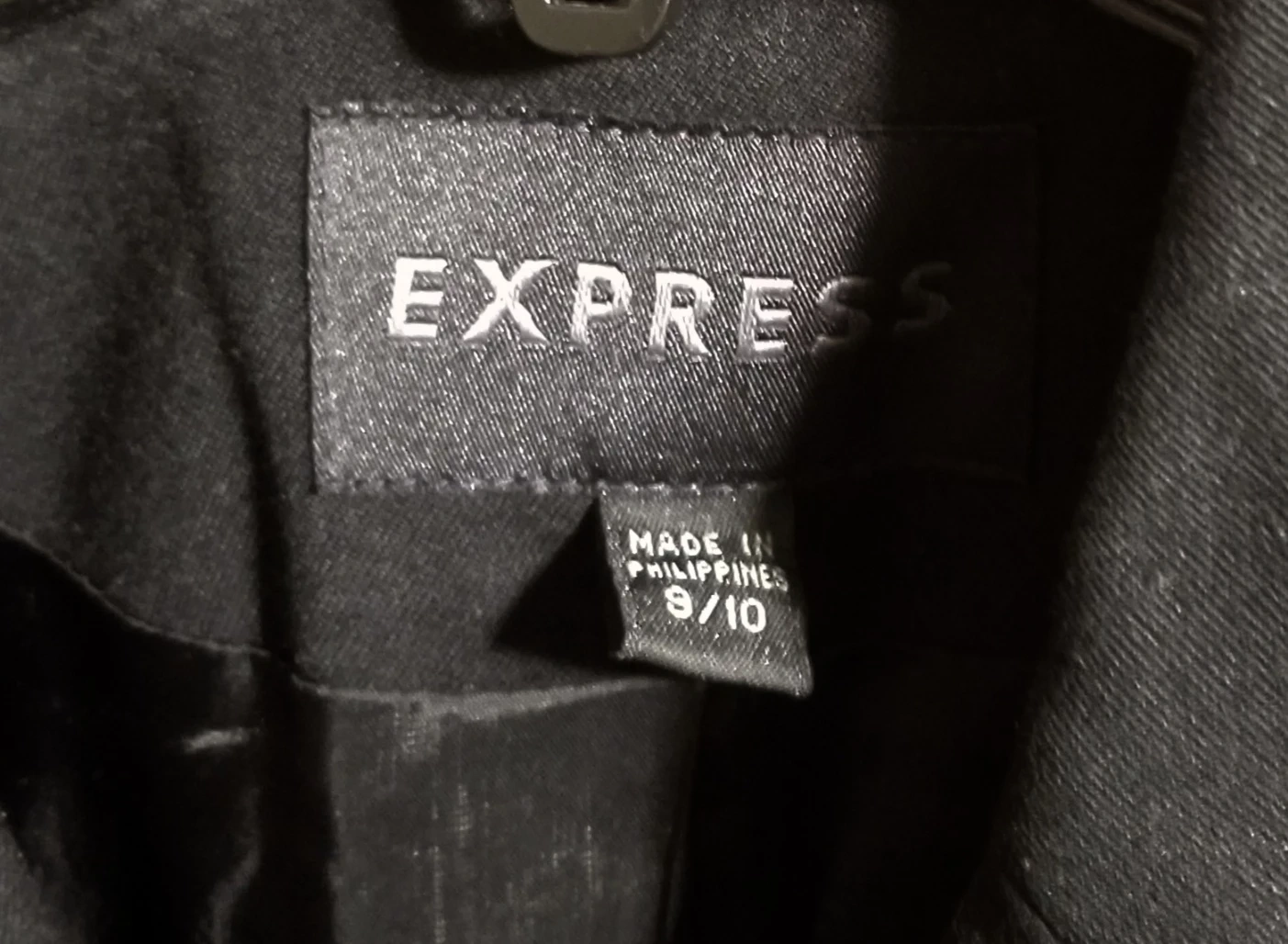 Selling a black blazer from Express. Never Worn. The shell is 63% polyester, 34% rayon, and 3% spandex. The lining is 50% nylon and 50% acetate Cash only please.