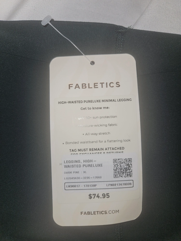 Selling a brand new pair of Fabletics High-Waisted PureLuxe leggings in size XL! These leggings are a beautiful Dark Pine color. They feature UPF 50+ sun protection and all-way stretch. The bonded waistband gives a flattering look. Originally bought for $74.95