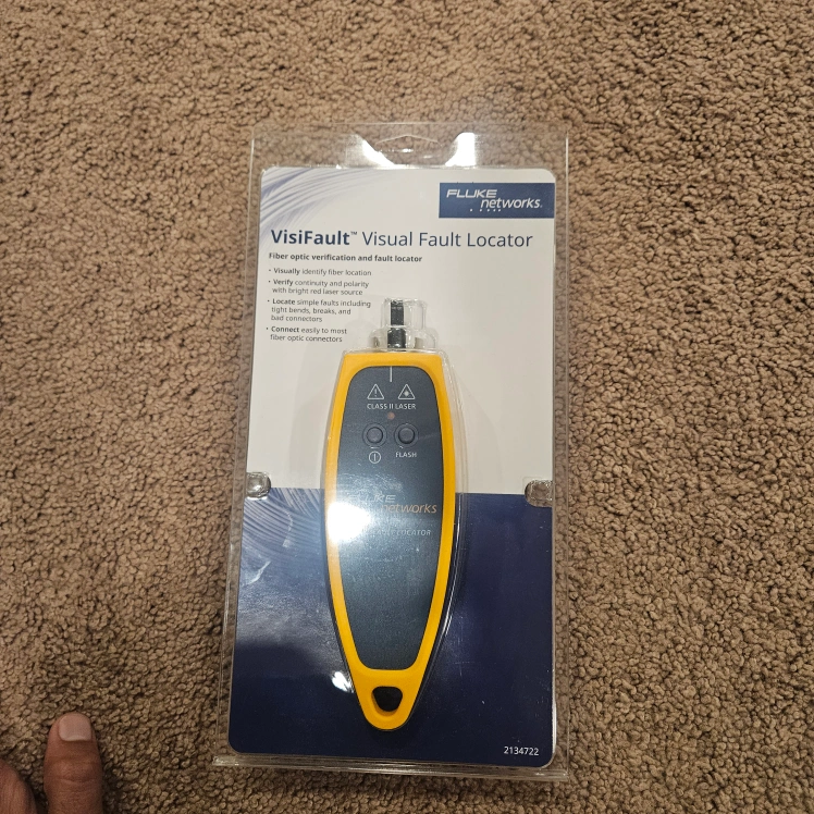 Selling a brand new Fluke Networks VisiFault Visual Fault Locator! It's still in its original packaging. This tool is designed for fiber optic verification and fault location. It can visually identify fibers, verify continuity and polarity with a bright red laser source, and locate simple faults like tight bends, breaks, and bad connectors. It also connects easily to most fiber optic connectors