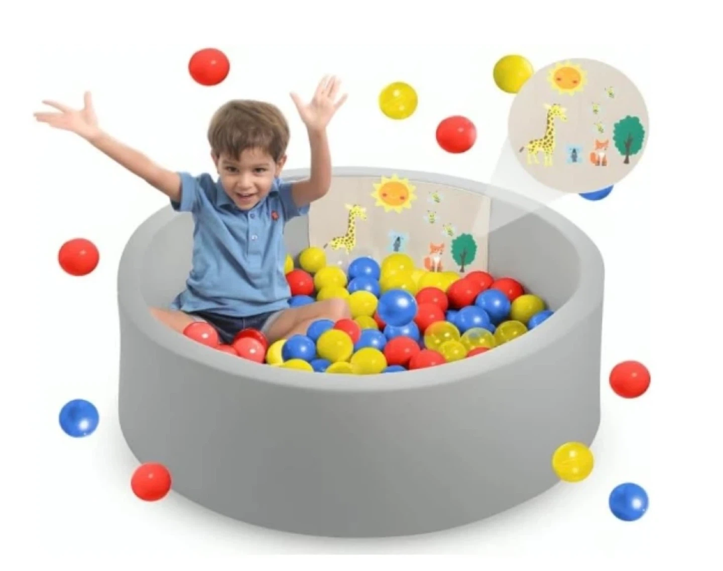 Foam Ball Pit for Toddlers w/ 32 Pcs Zoo Animals Felt Board Set - 35.4" x 11.8" Kids Ball Pit for Girls & Boys - Washable Soft Cloth - Fun Indoor Foldable Baby Playpen - Balls Not Included New, Open Box, Still Sealed on Inside