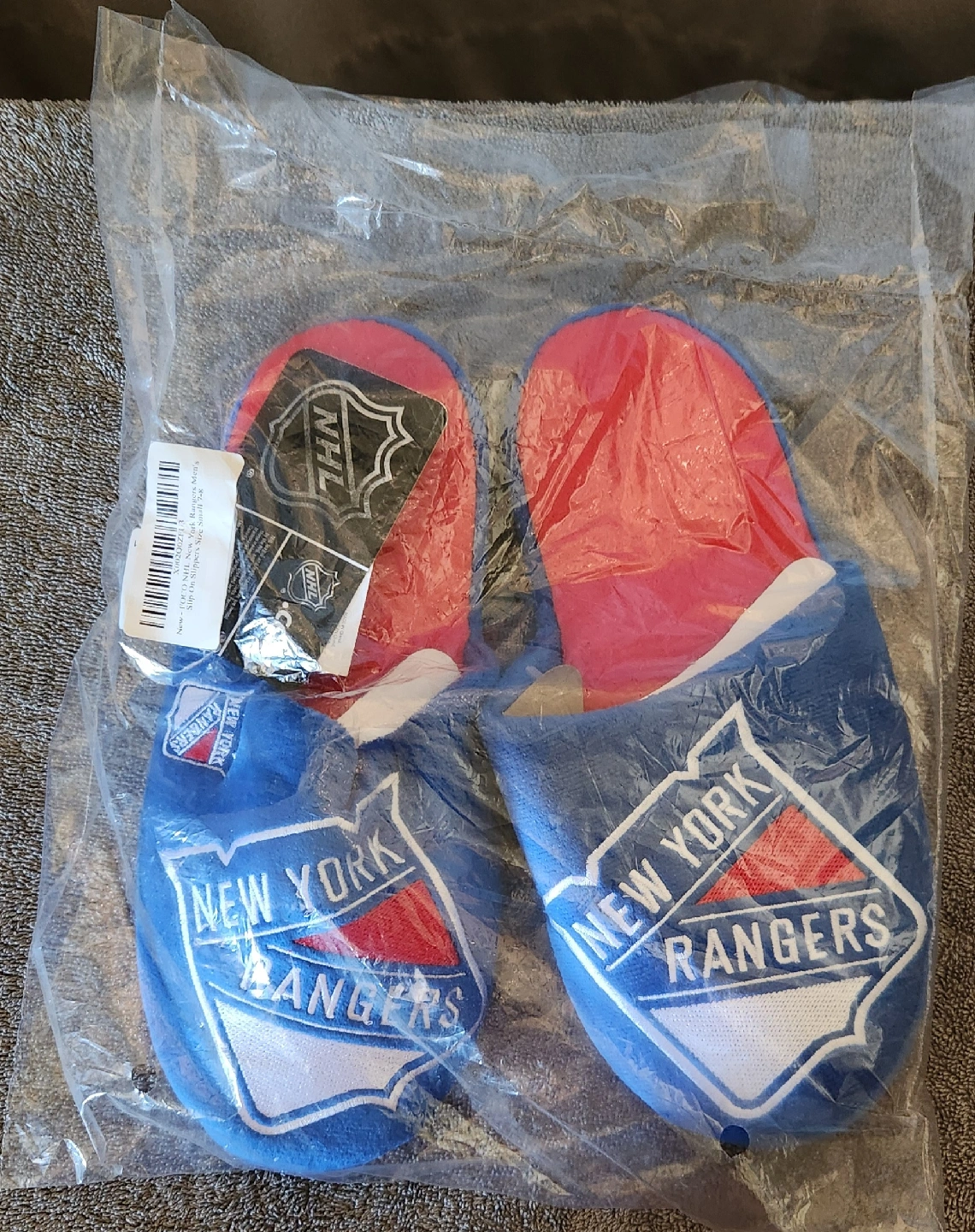 Selling a brand new pair of FOCO NHL New York Rangers slip-on slippers! They are a men's size small, fitting sizes 7-8. Show your team spirit while staying comfy!