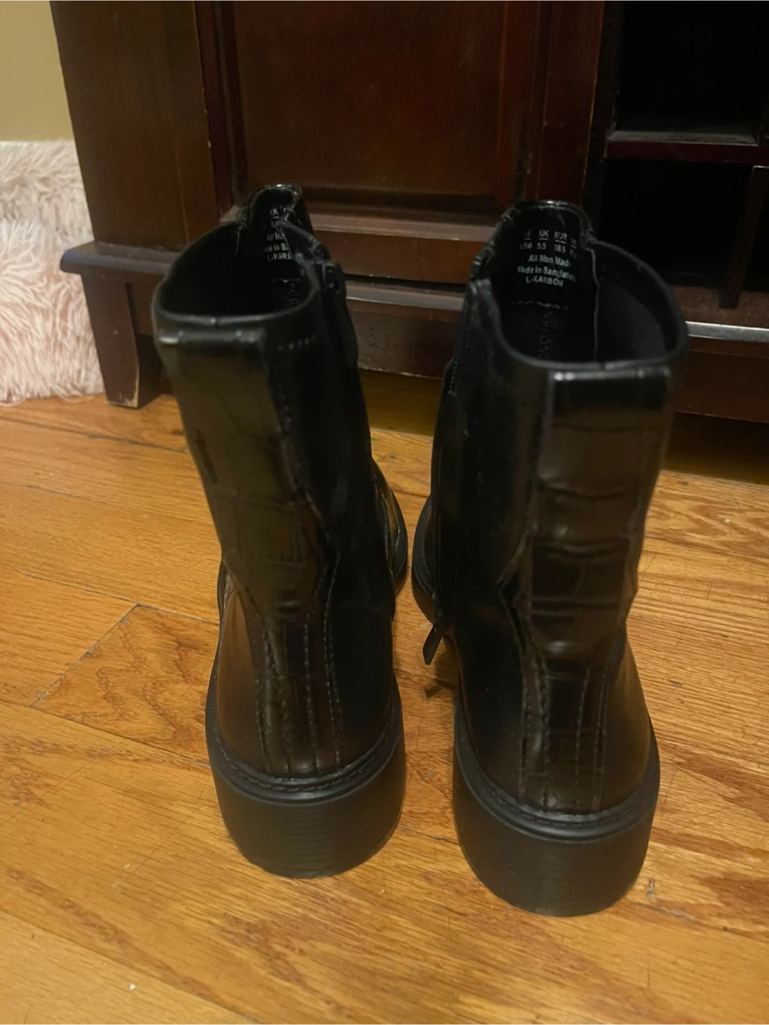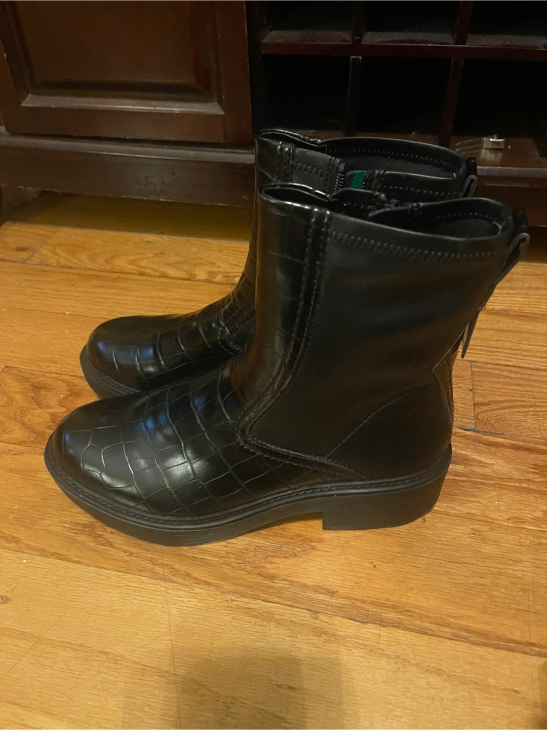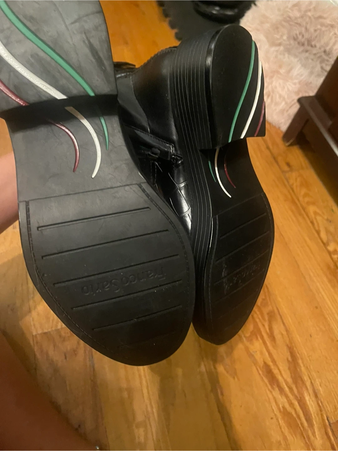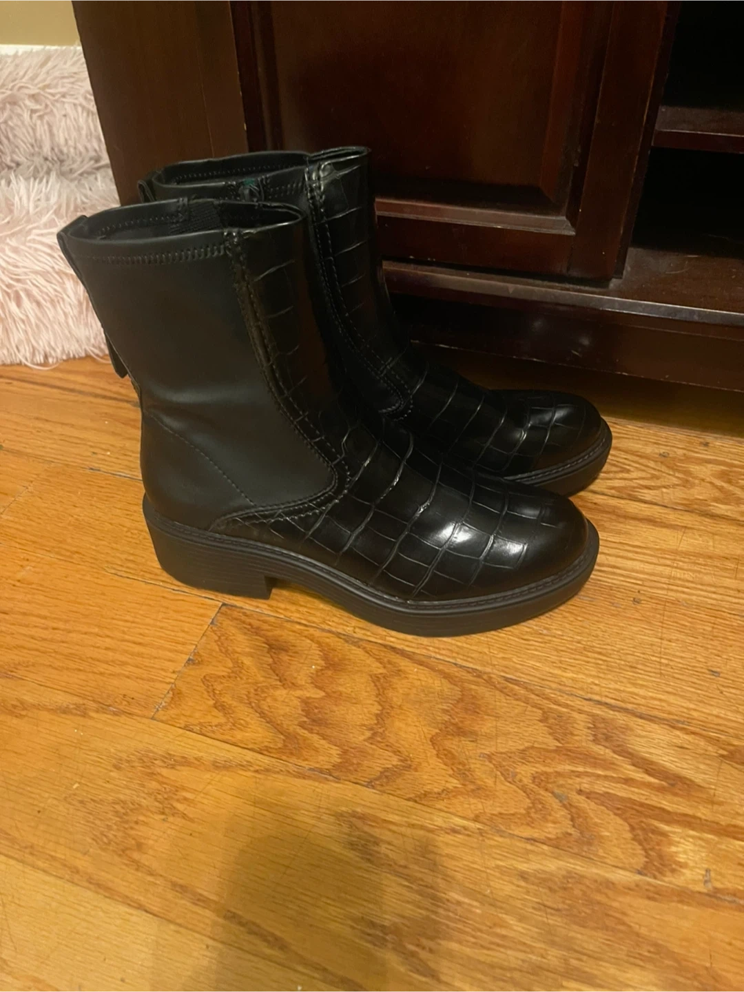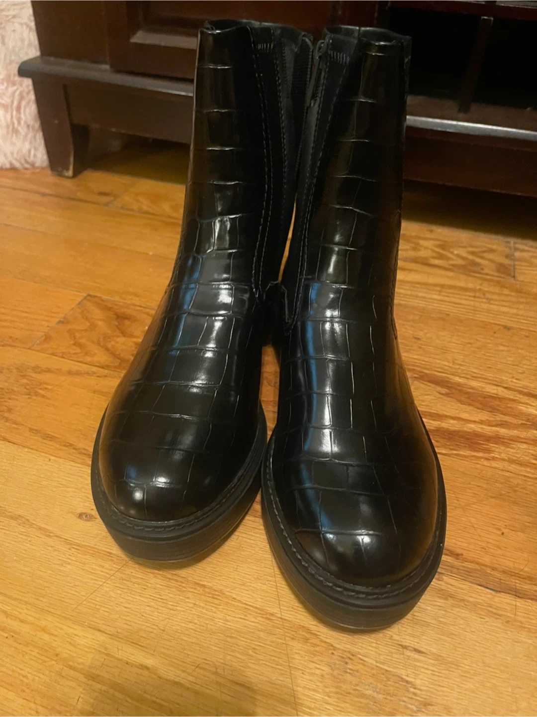Franco Sarto black ankle boots in a women's size8.5 These boots have a faux crocodile skin texture and a zipper in the back