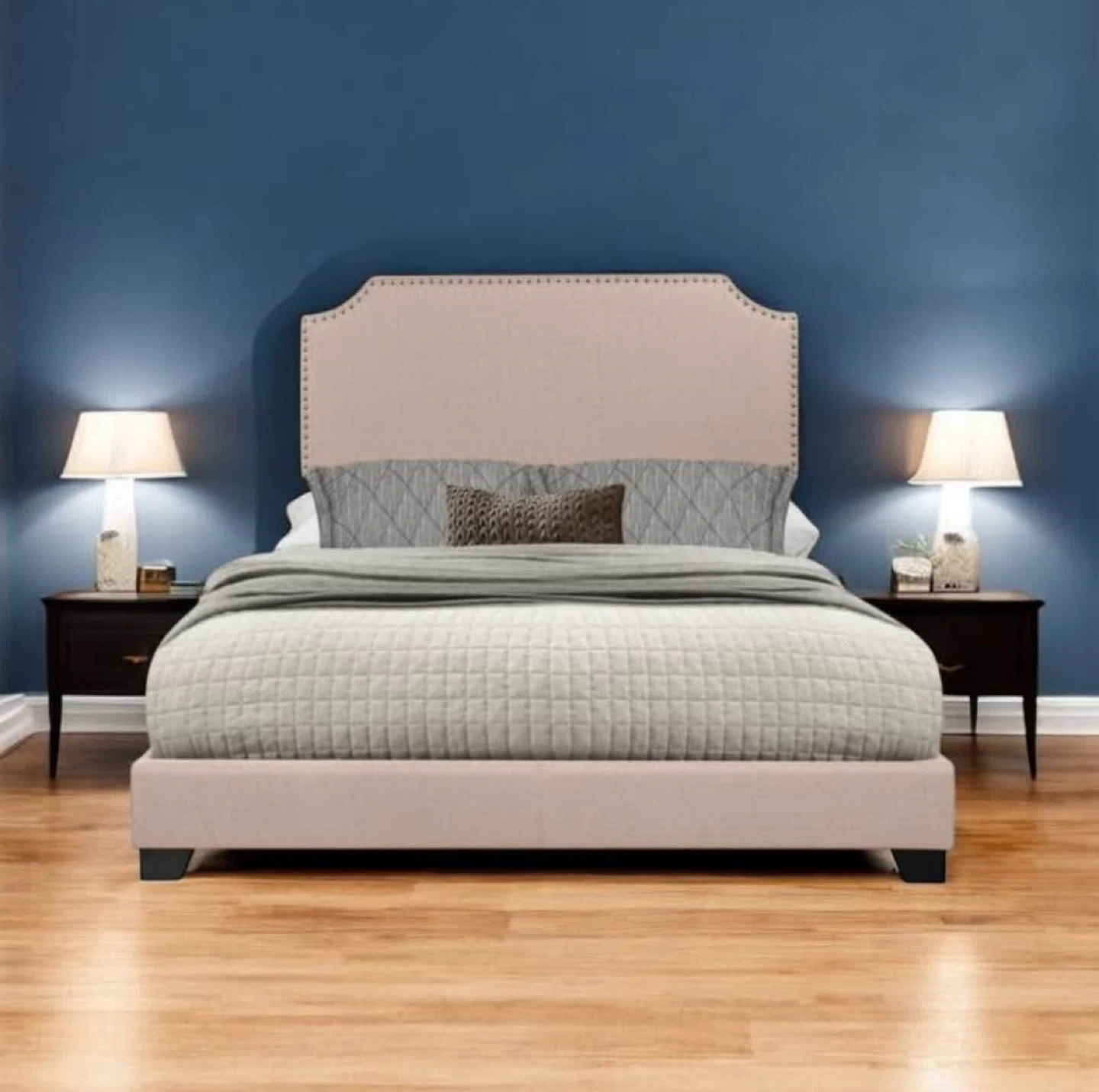 New Full Size Beige Upholstered Bed * New In The Box for Easy Transport in Your Vehicle- In Excellent Condition! * Dimension: 82" x 58 1/8" x 49 5/8"H * Box Measurements: 60.62” W x 28.74” D x 4.3” H * Mattress Not Included * Verified Trusted Seller / Read/ See My Reviews! Follow Me For Amazing Deals Listed Daily!