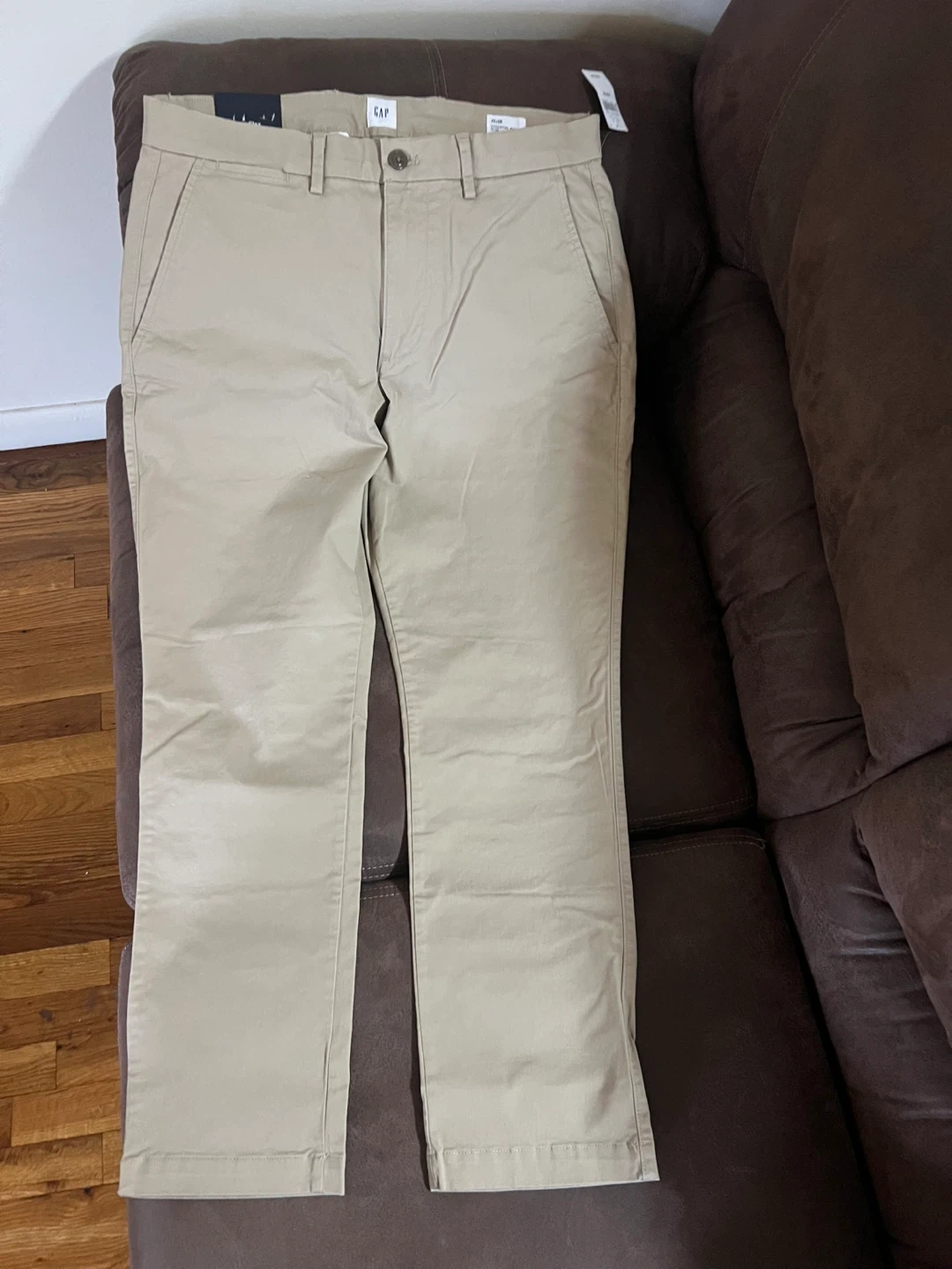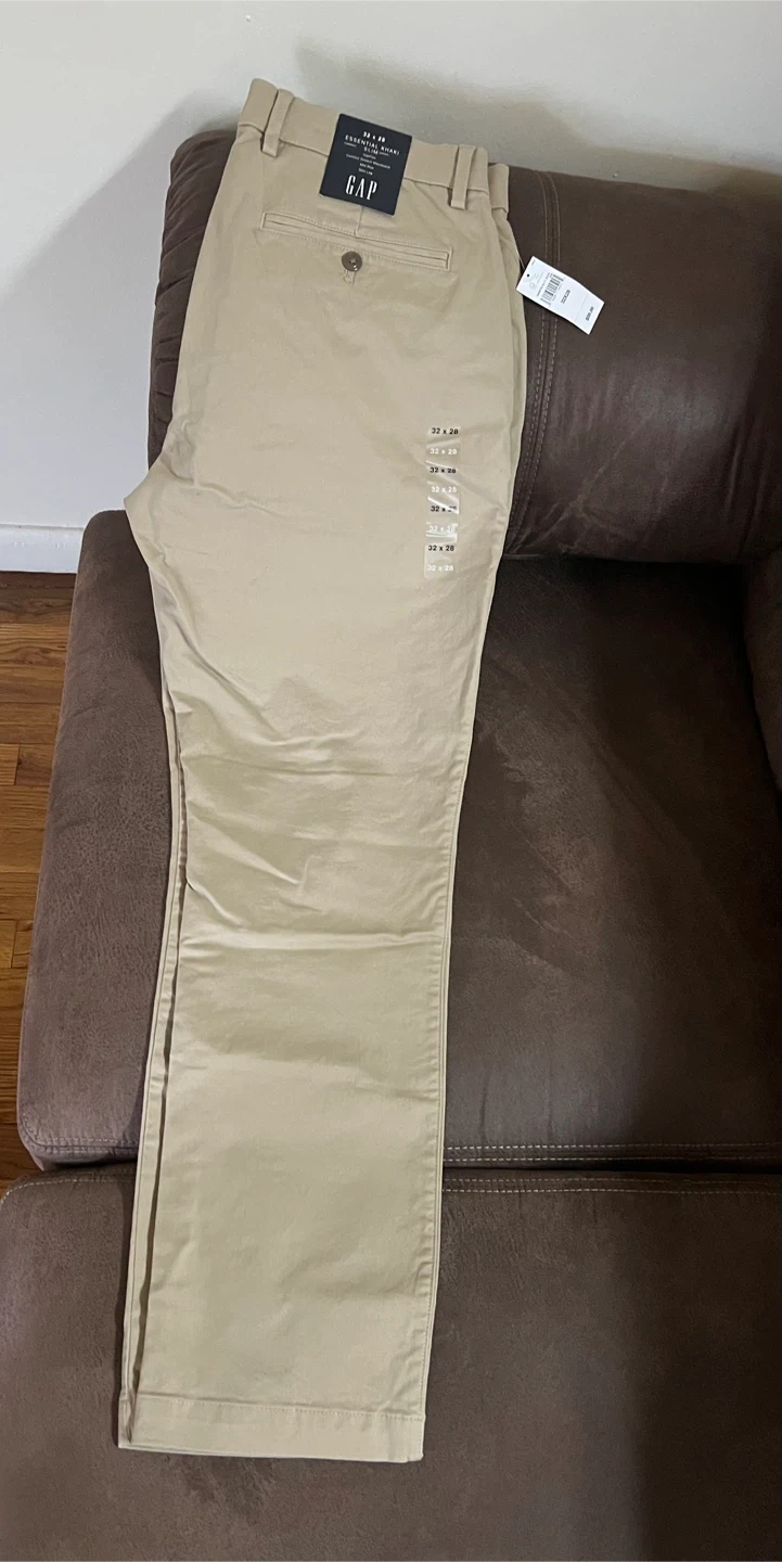 Selling a brand new pair of GAP Essential Khaki pants! They are size 32x28 and have a classic, versatile look