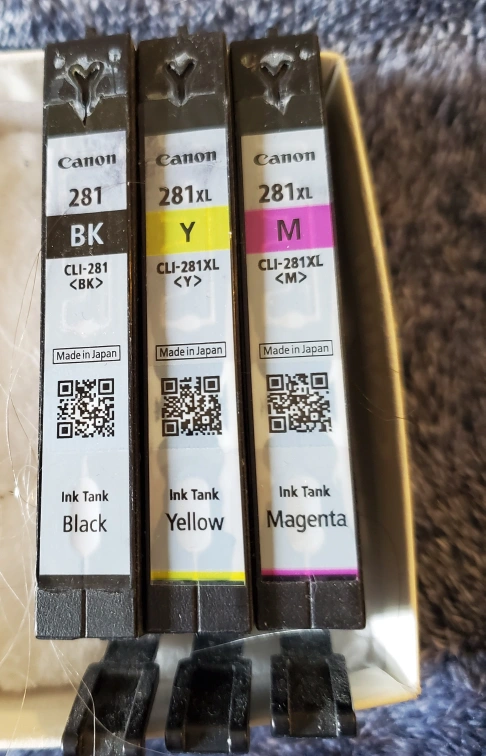 Set of Two NEW unopened genuine Canon PG-280XL (Black) ink cartridges. Also giving away Free - partially used CLI-281XL (Black, Yellow, Magenta) cartridges. (Top quality but I bought a new printer that uses different ink ).