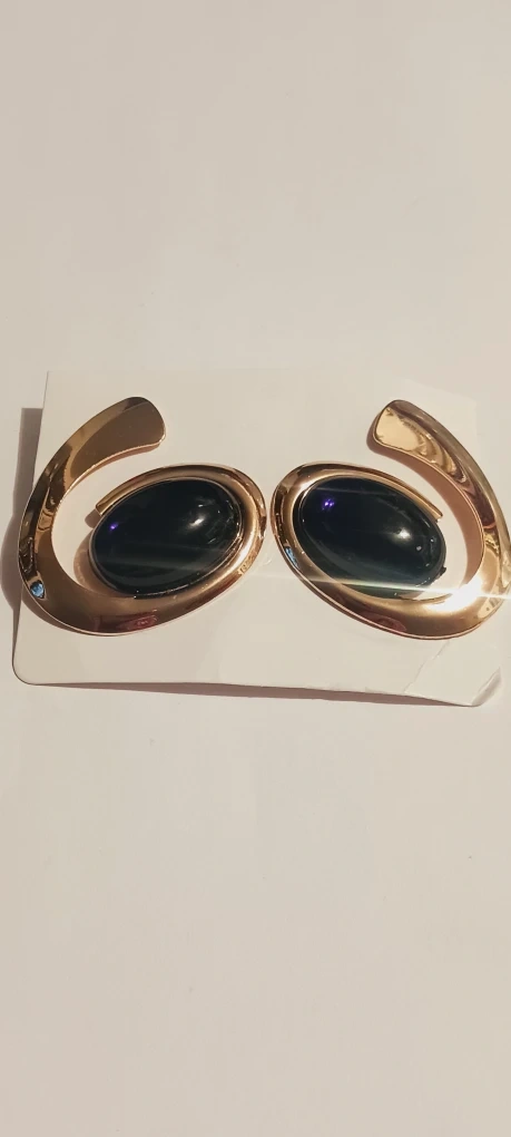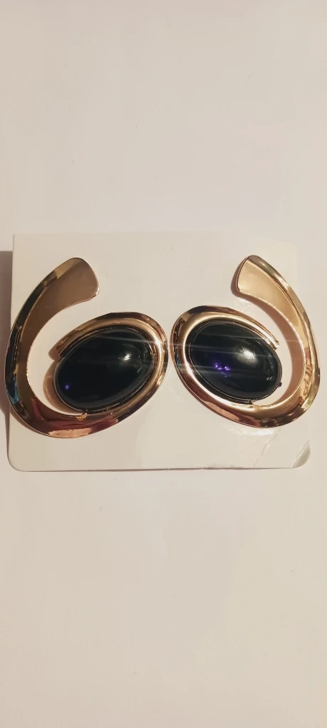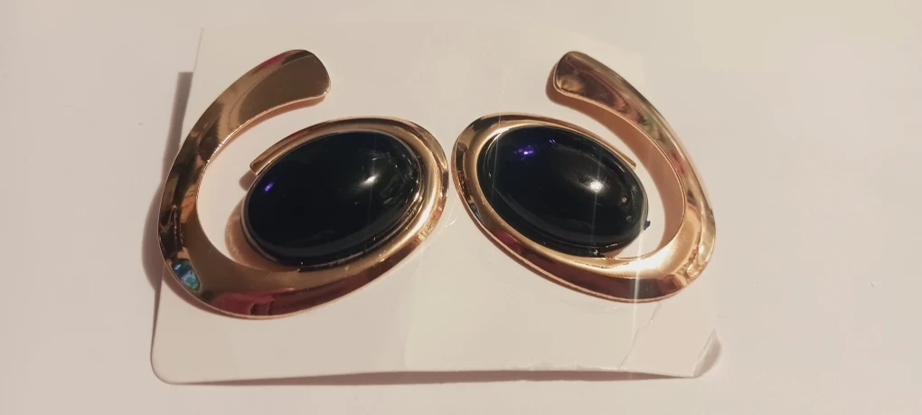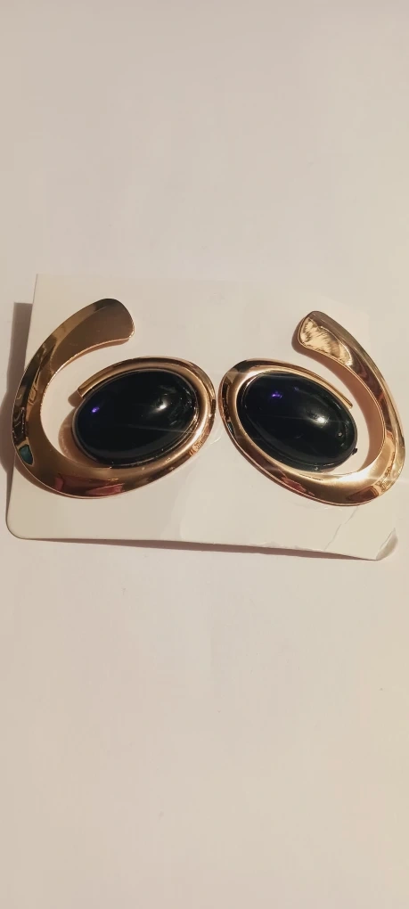 1000+New !! These are a pair of gold-tone earrings featuring a black stone. They are brand new and ready to add a touch of elegance to any outfit New !! 2"
