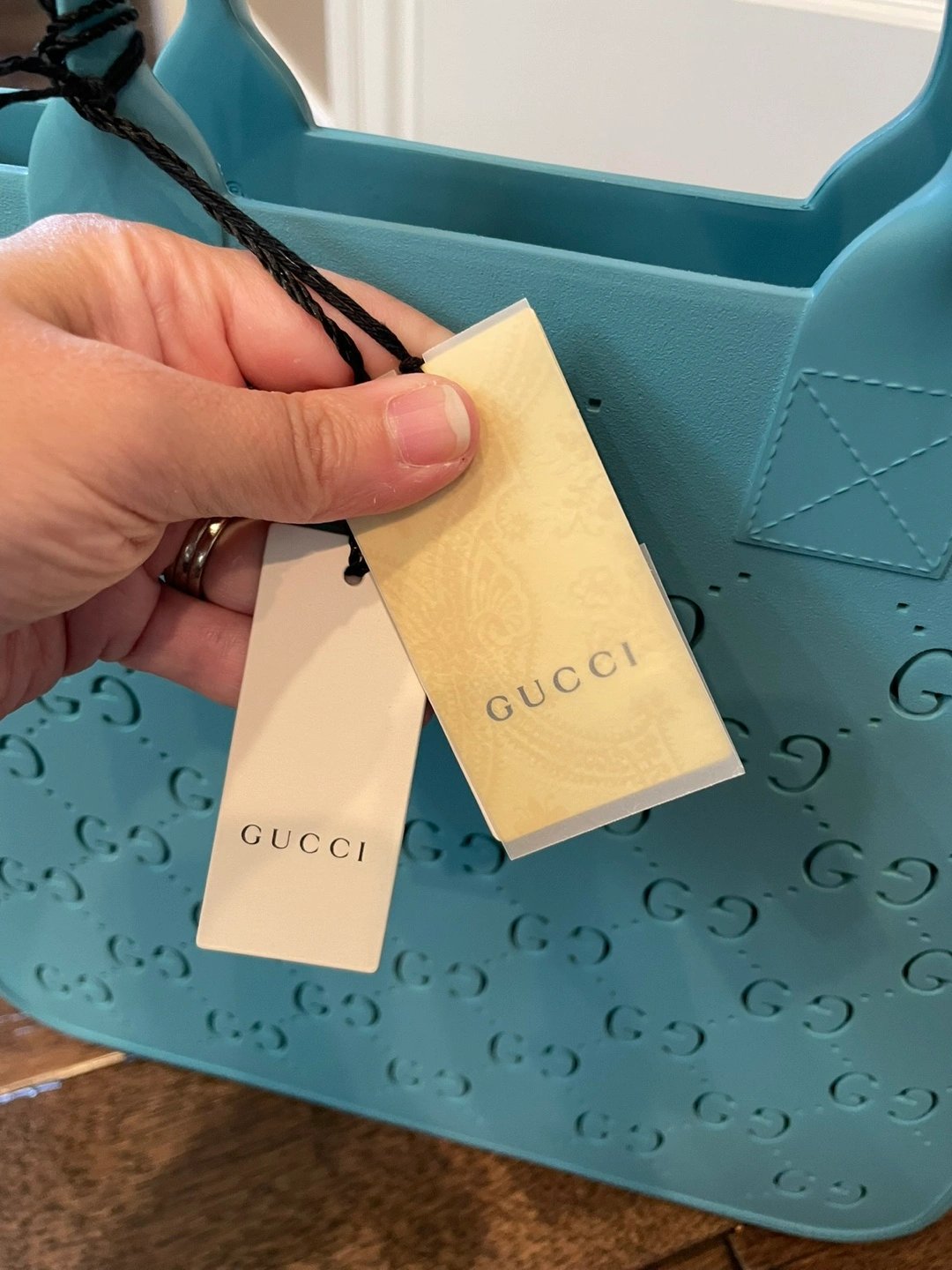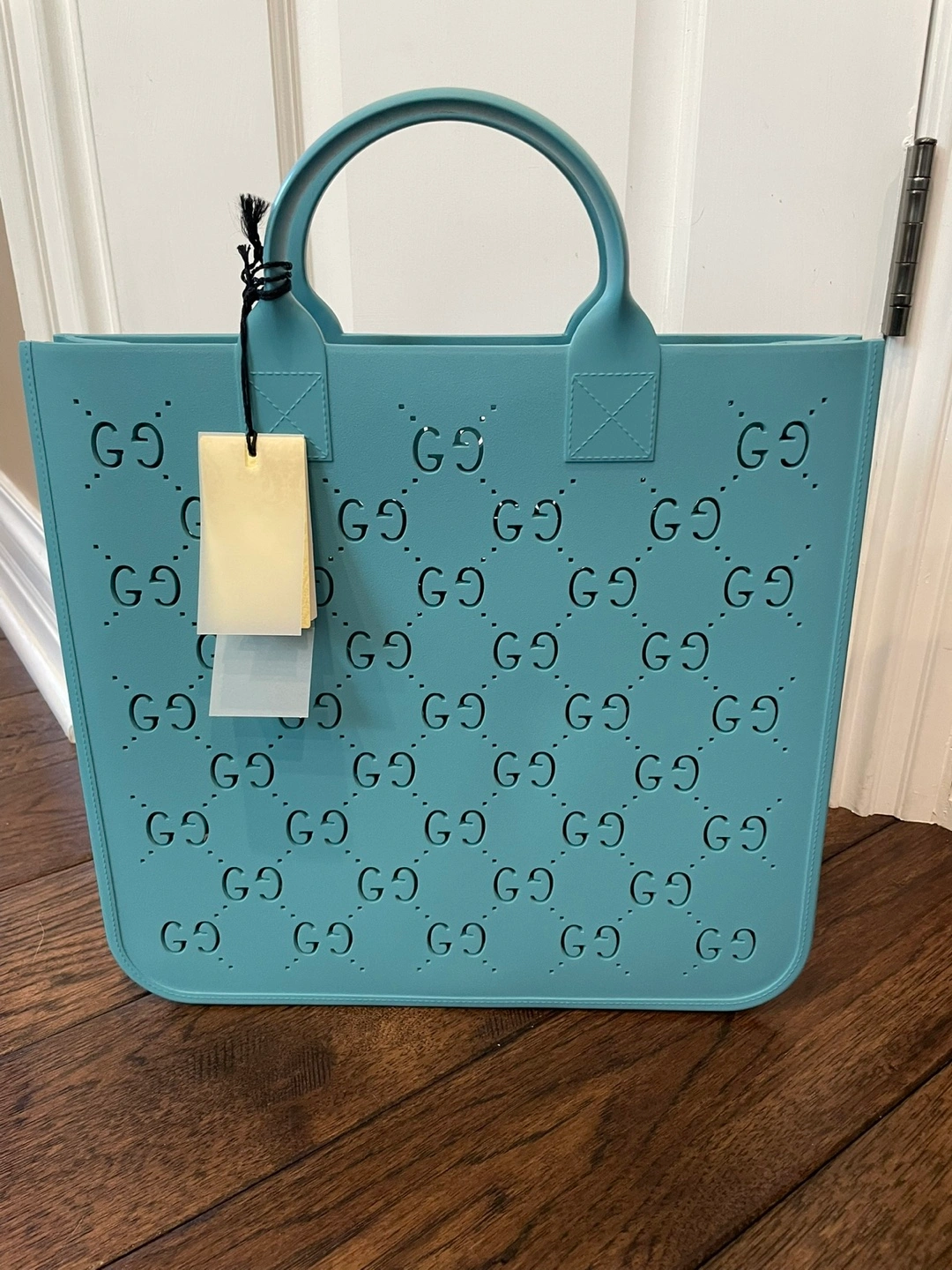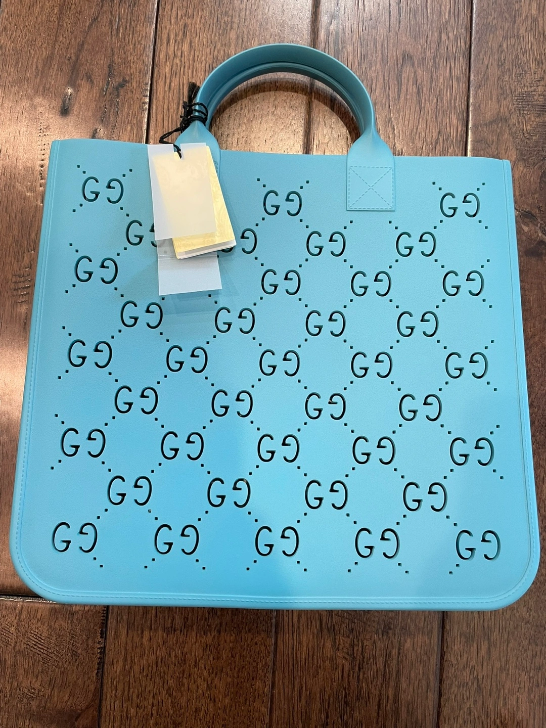 Selling a brand new Gucci GG Supreme rubber tote bag in a beautiful blue color. It features the Gucci logo design throughout. Comes with the original dust bag!