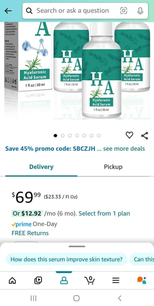 I have a new HA Hyaluronic Acid Serum for sale! It comes in a 1 fl oz | 30 ml size. a set of 3 Directions: 1. Wash and pat skin dry 2. If using a toner, apply it first 3. Apply a small amount of this serum to face, neck and décolleté 4. Follow with a moisturizer 5. Can be used daily, morning and evening