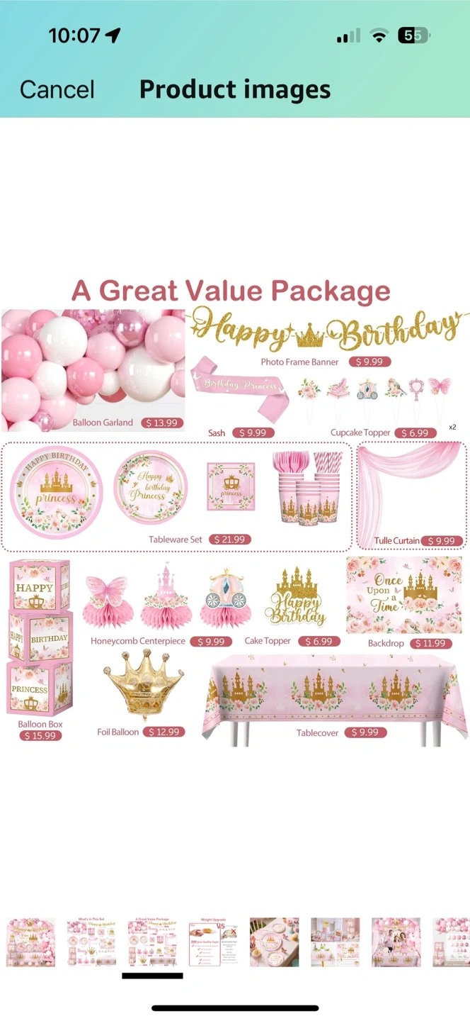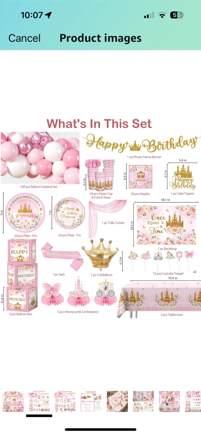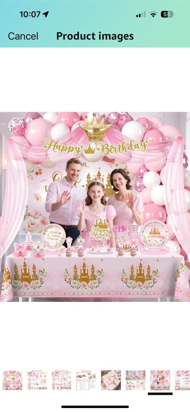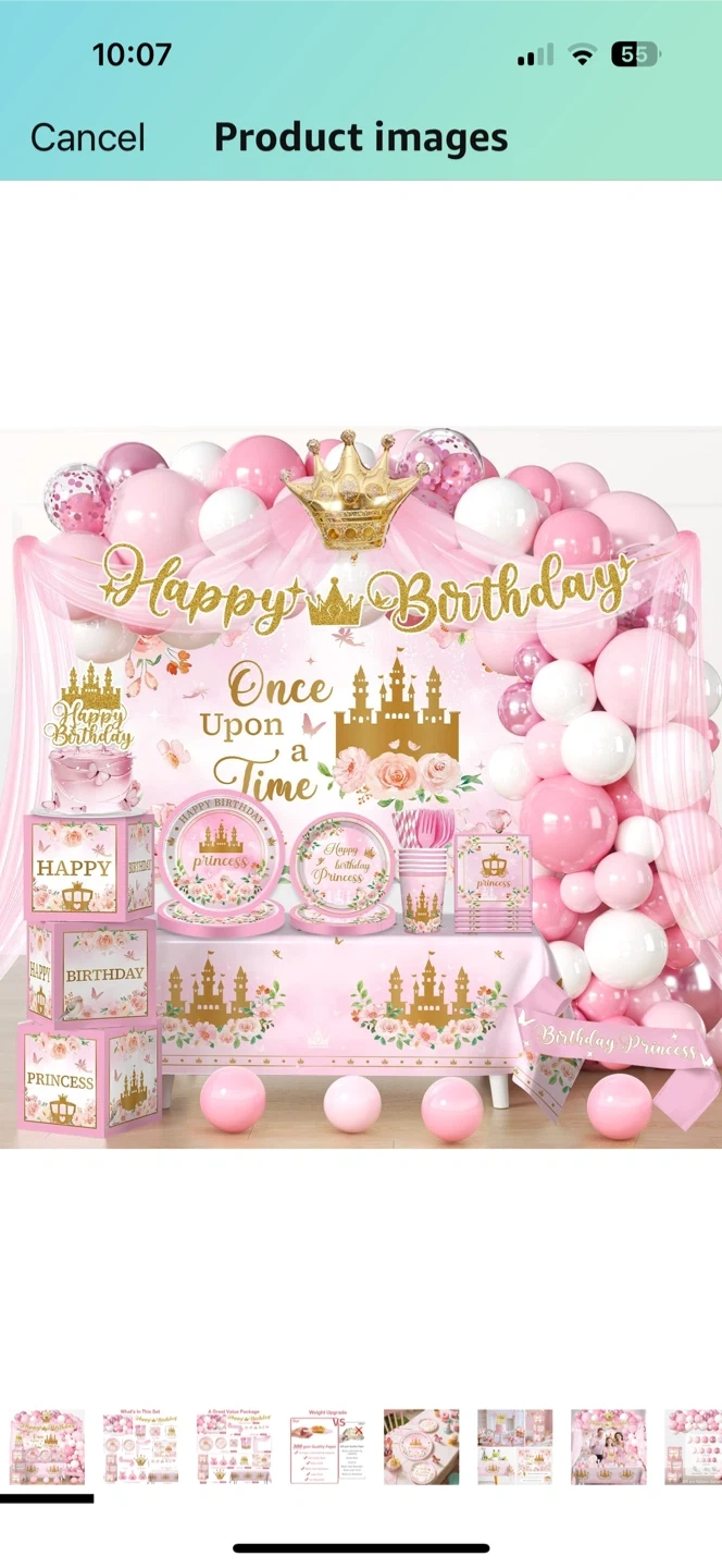 Get ready to throw a magical birthday bash with this adorable princess-themed party supplies set! It includes everything you need to create a memorable celebration. The set features a balloon garland, tableware, decorations, and more, all adorned with charming princess designs. Perfect for a little girl's special day!