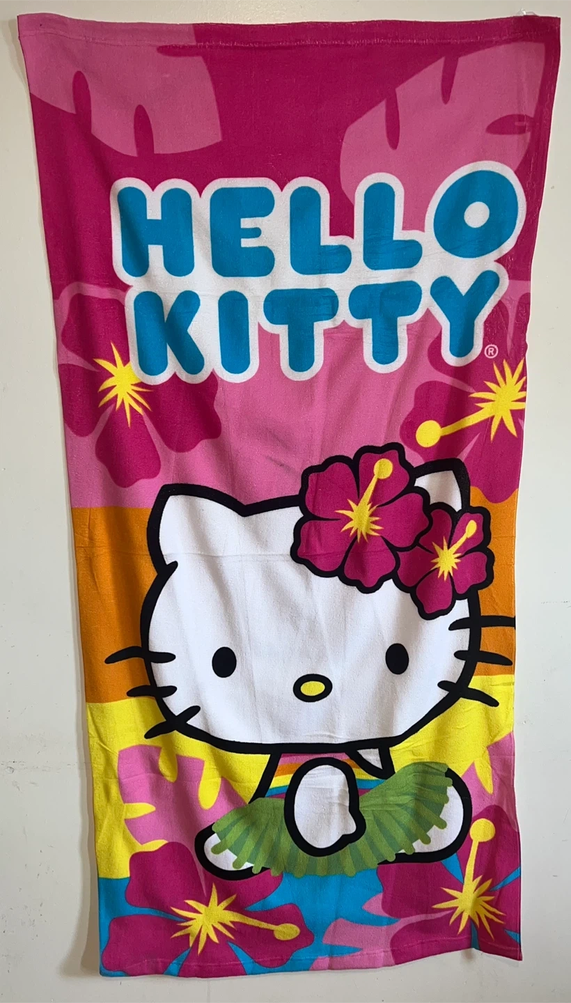 Selling a cute Hello Kitty beach towel! It features a fun and colorful design with Hello Kitty and hibiscus flowers. Perfect for the beach or pool! NEW NEVER USED IT IS 27.5x55