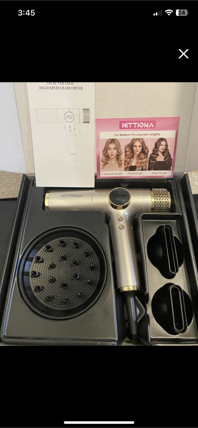 75Selling a brand new HITTIONA high speed hair dryer! It comes with the box and all attachments