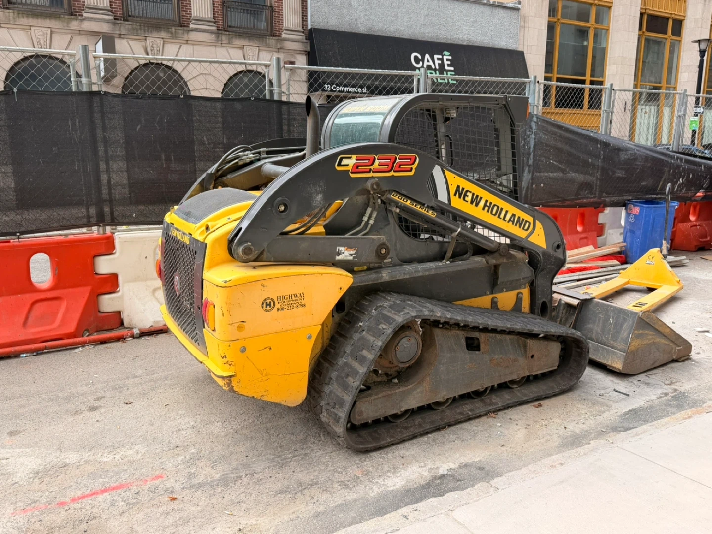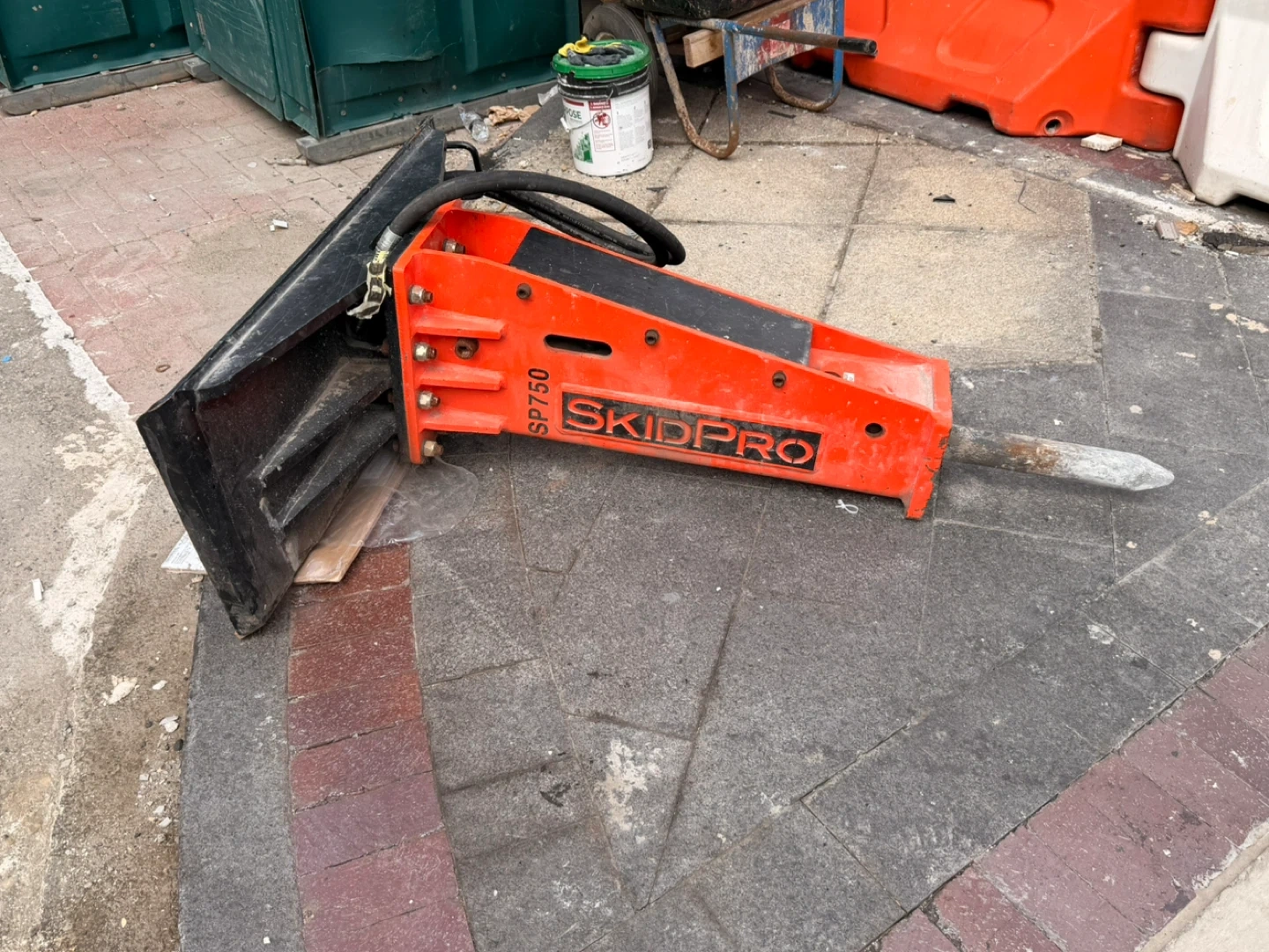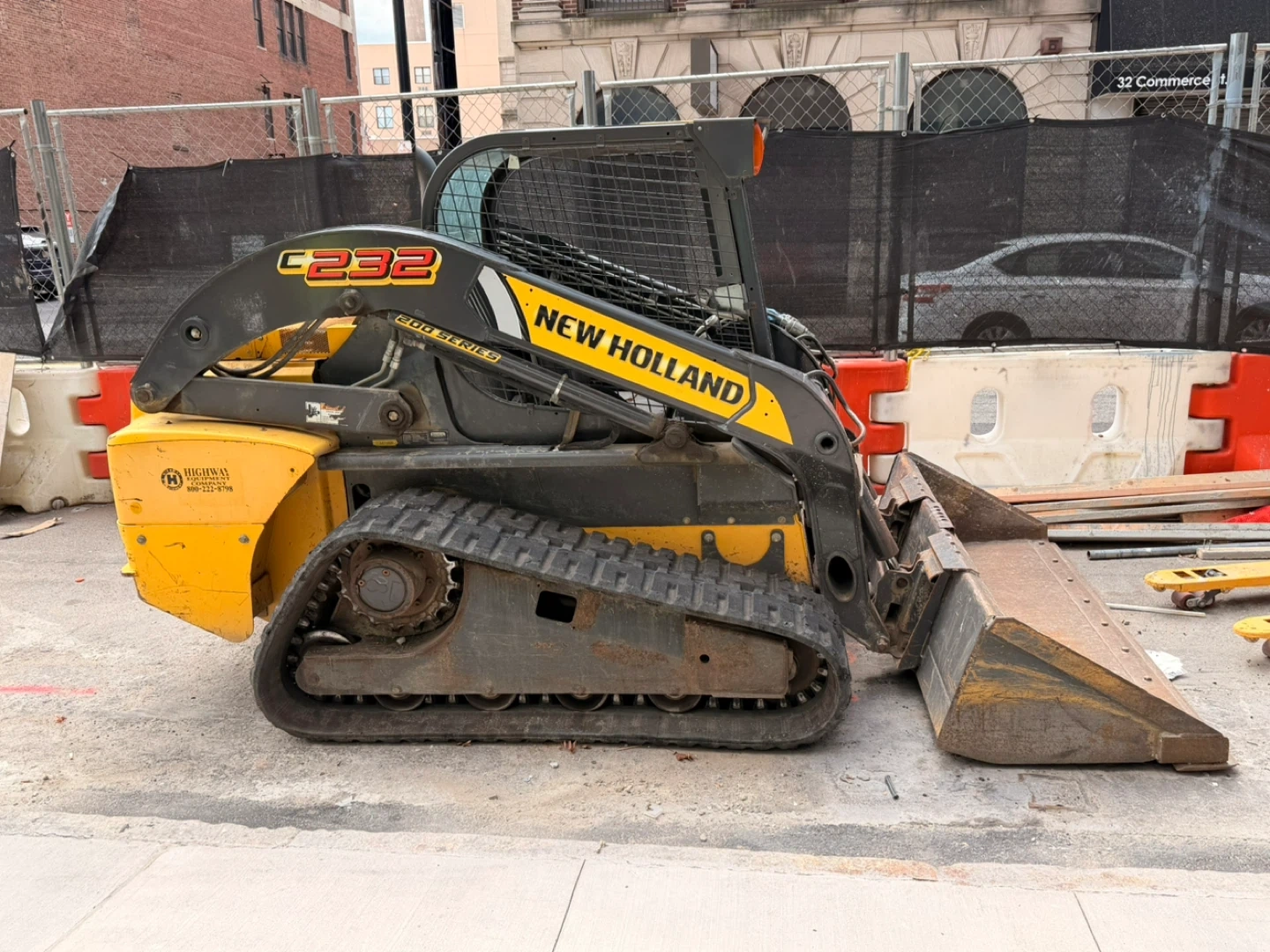 60I'm selling a New Holland C232 skid steer loader. It is yellow and black. Also for sale is a Skidpro SP750 Hydraulic Breaker.