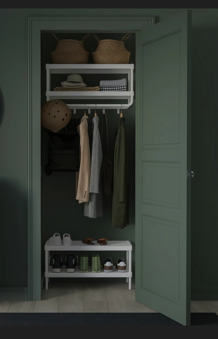 Selling a brand new white IKEA MACKAPÄR coat rack with a shelf! It's perfect for entryways, closets, kitchen or any room to keep things organized. This rack features a shelf on top for storage and hooks for hanging coats, bags, and accessories. still in box.
