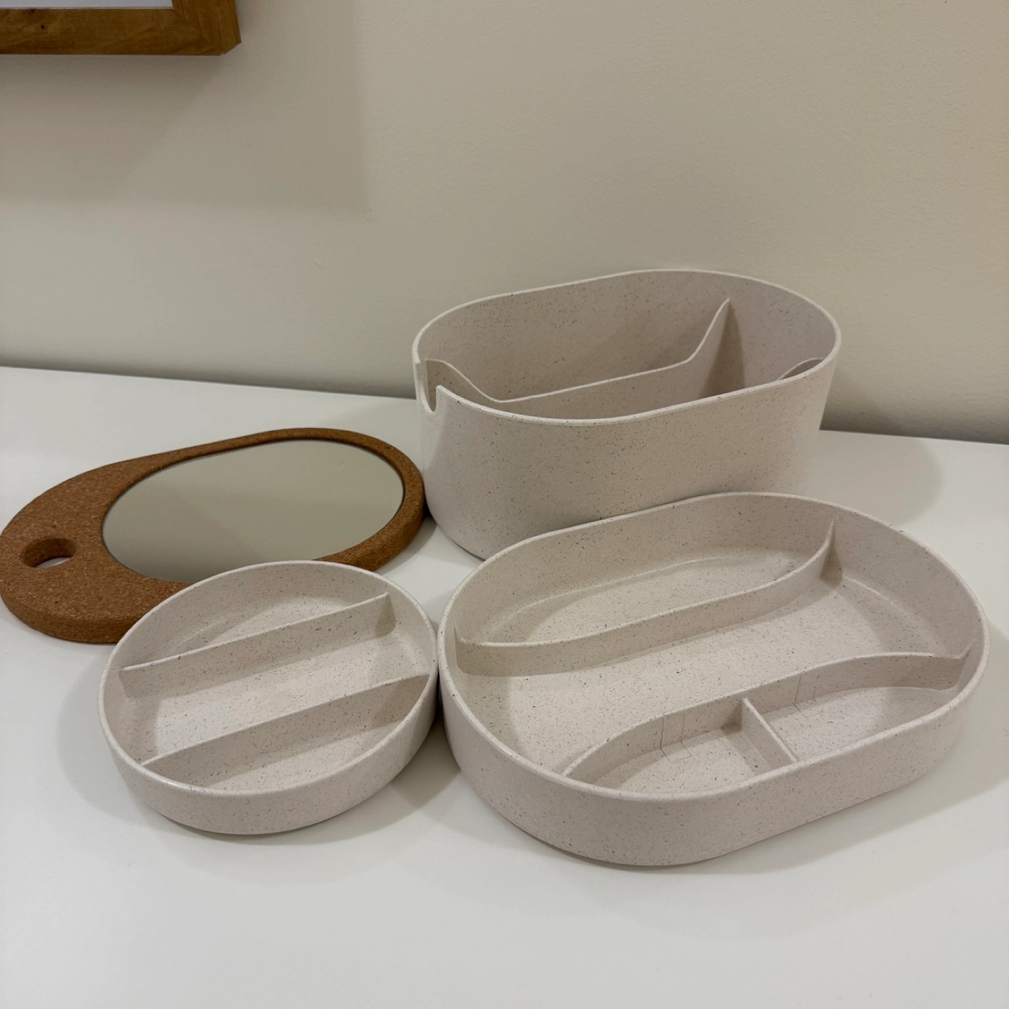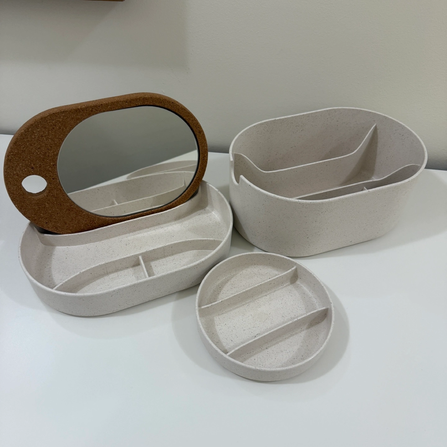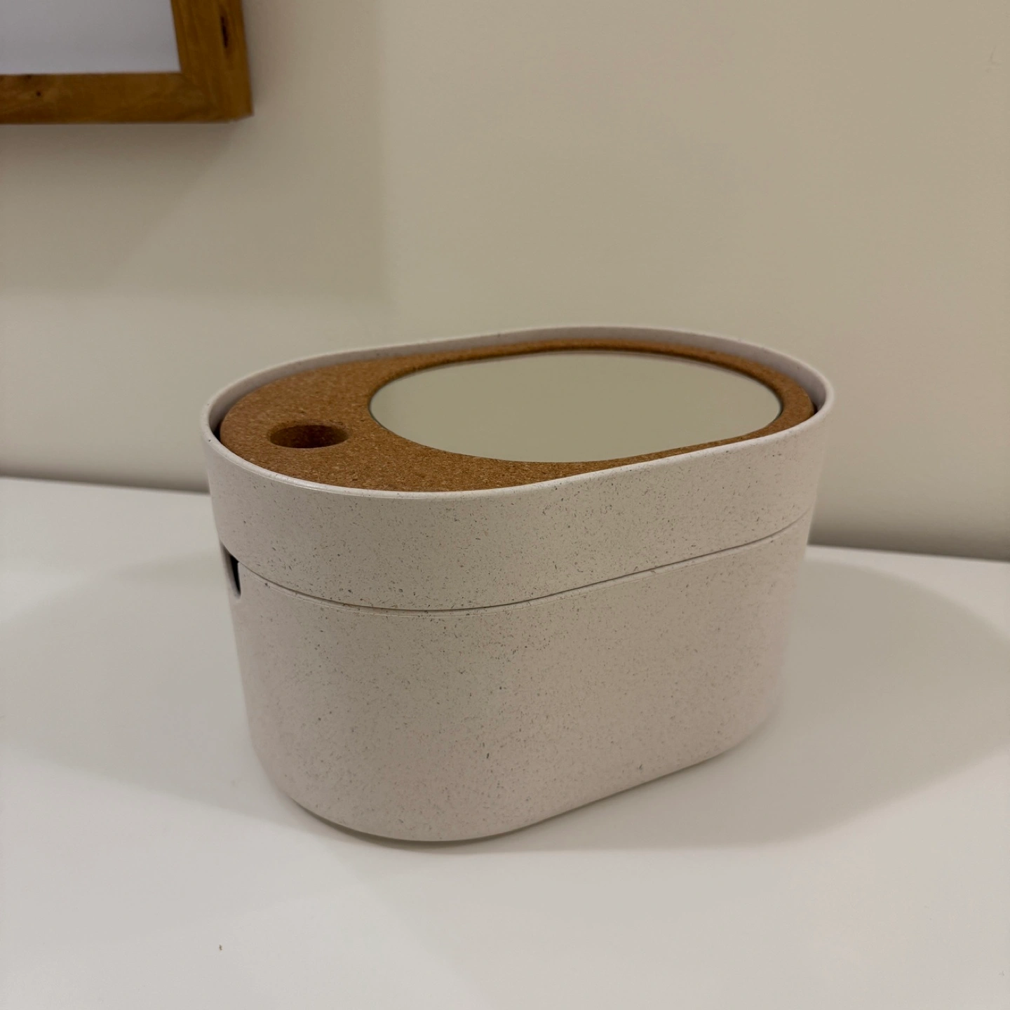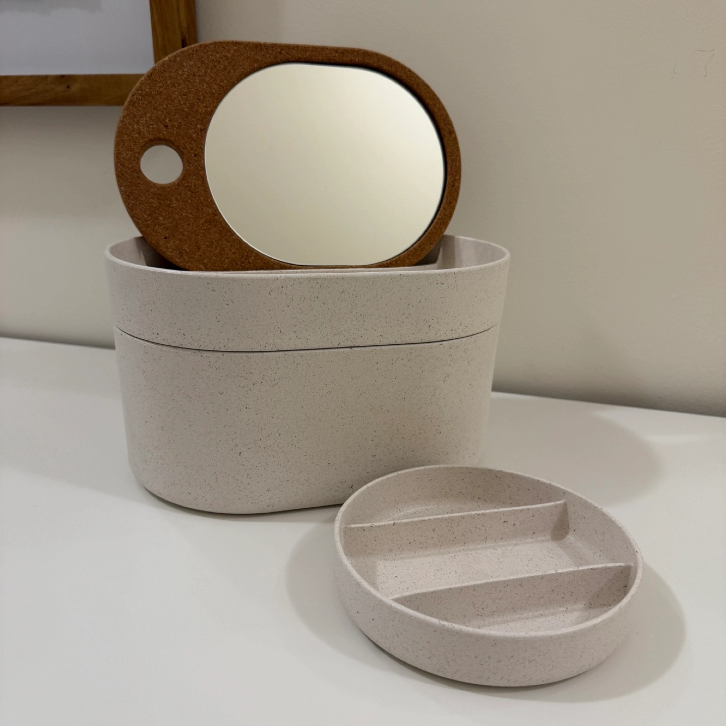 60Bring the storage box wherever you like, to put on your contact lenses, jewellery or make-up. You don’t have to look for a mirror, there’s one inside. Perfect for storing tweezers, nail files, scissors, contact lenses or make-up since the storage box has 2 inserts and 12 small compartments.