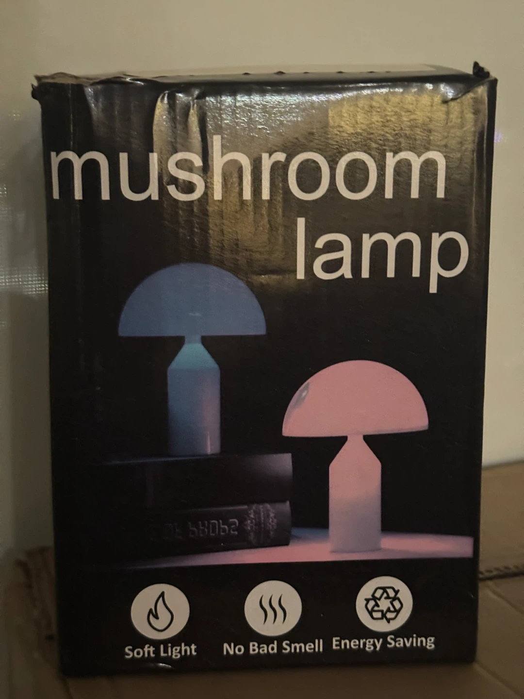 Selling a mushroom lamp that provides soft light and is energy saving! It's still in its original box. This lamp will add a cute touch to any room