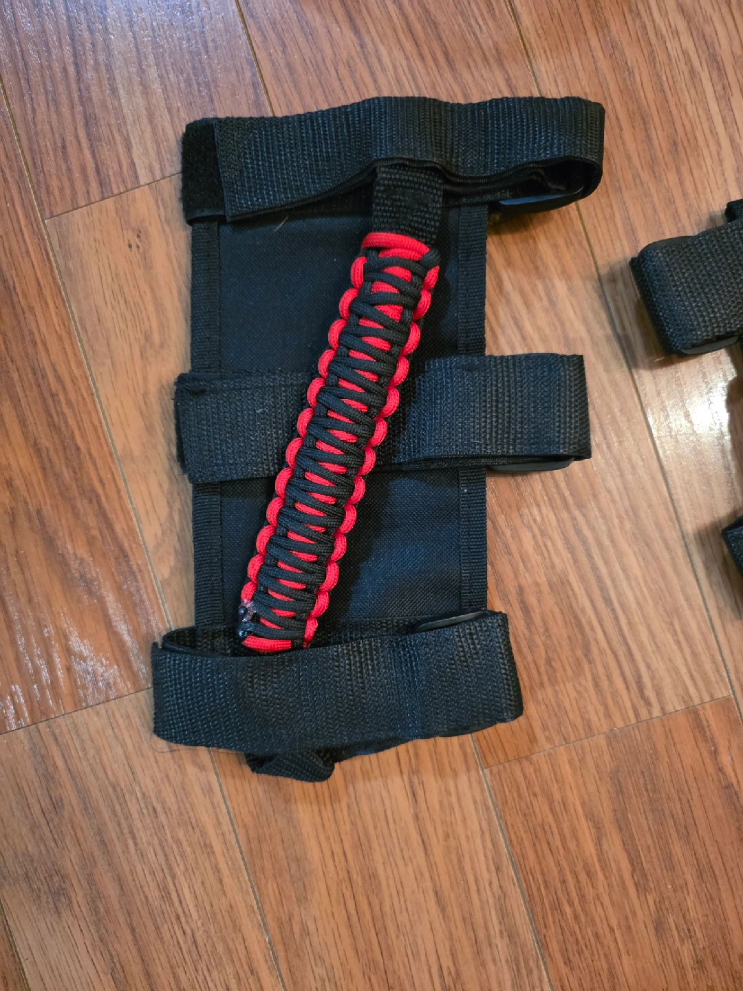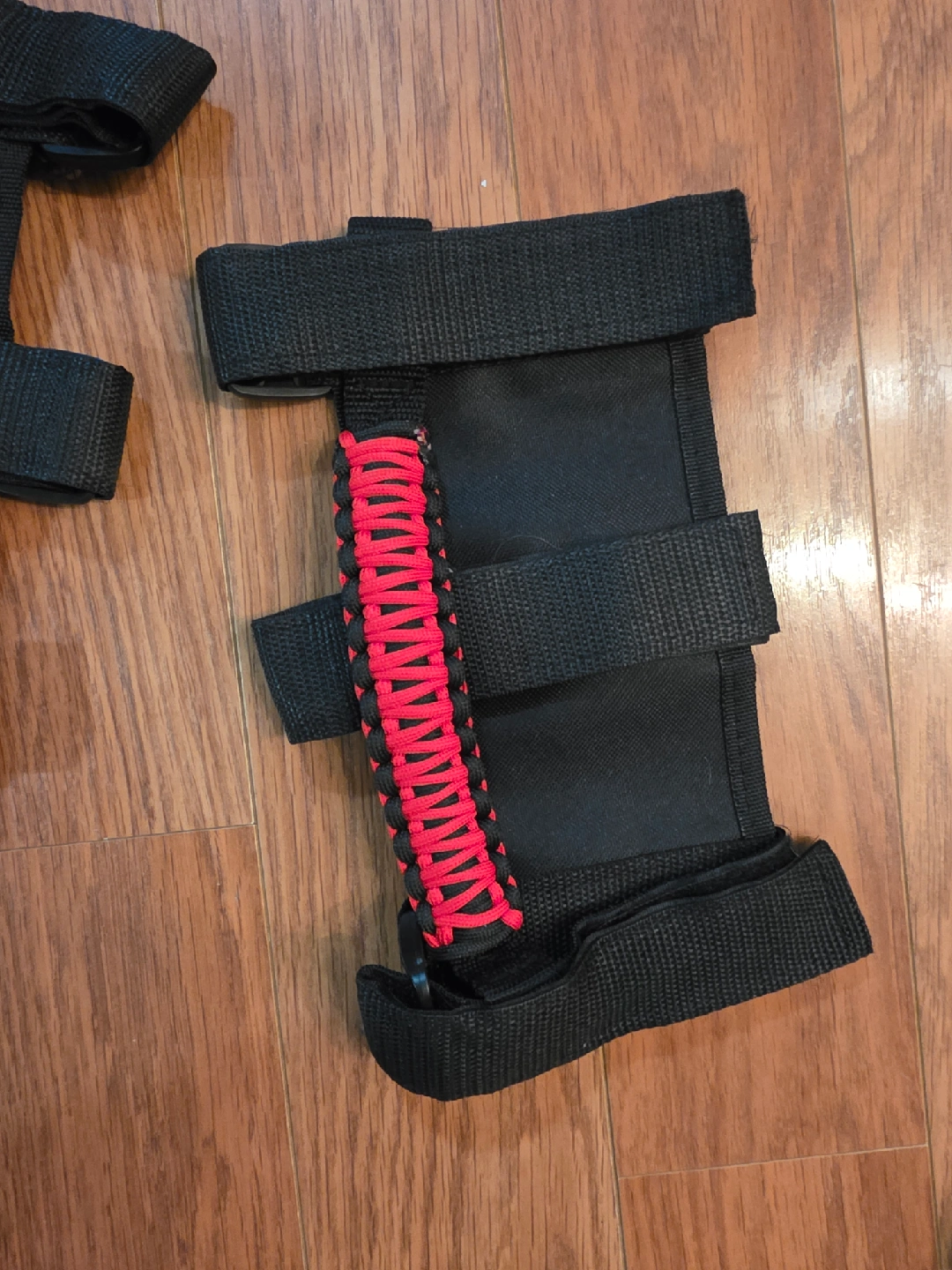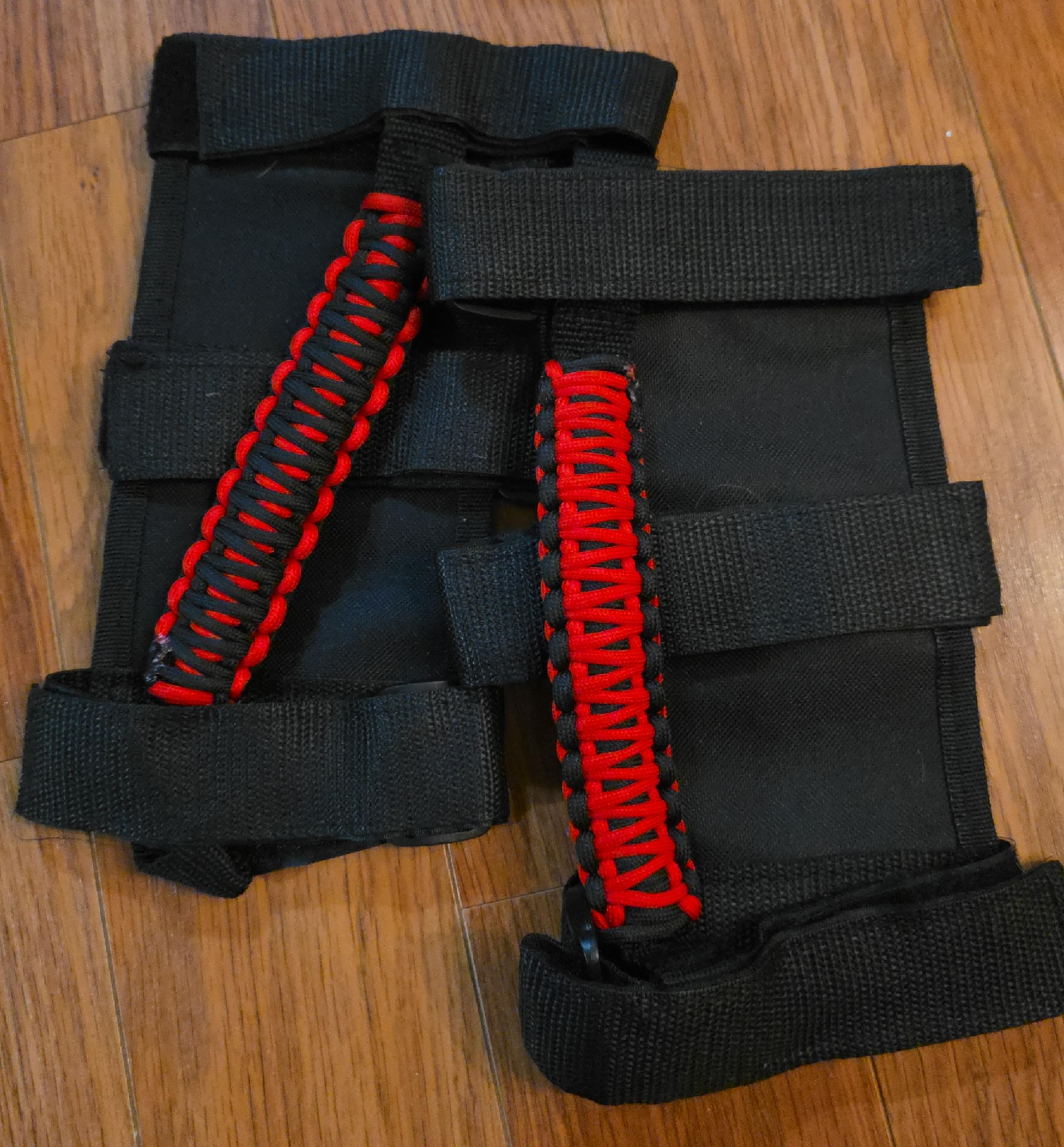 BRAND NEW pair of black Jeep grab handles with red paracord grips. They're in great shape and ready to install in your Jeep for extra support on those off-road adventures!