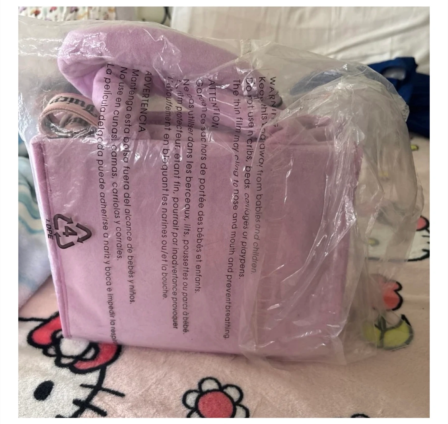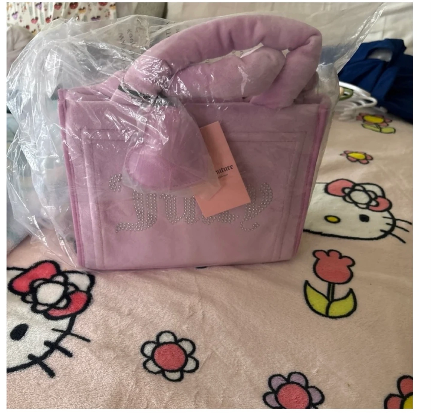 This is a brand new Juicy Couture Y2K plush tote bag! It's a super cute and stylish bag that's perfect for everyday use. The bag is made of soft, plush material and features the Juicy Couture logo in rhinestones. It's in excellent condition and comes in its original packaging