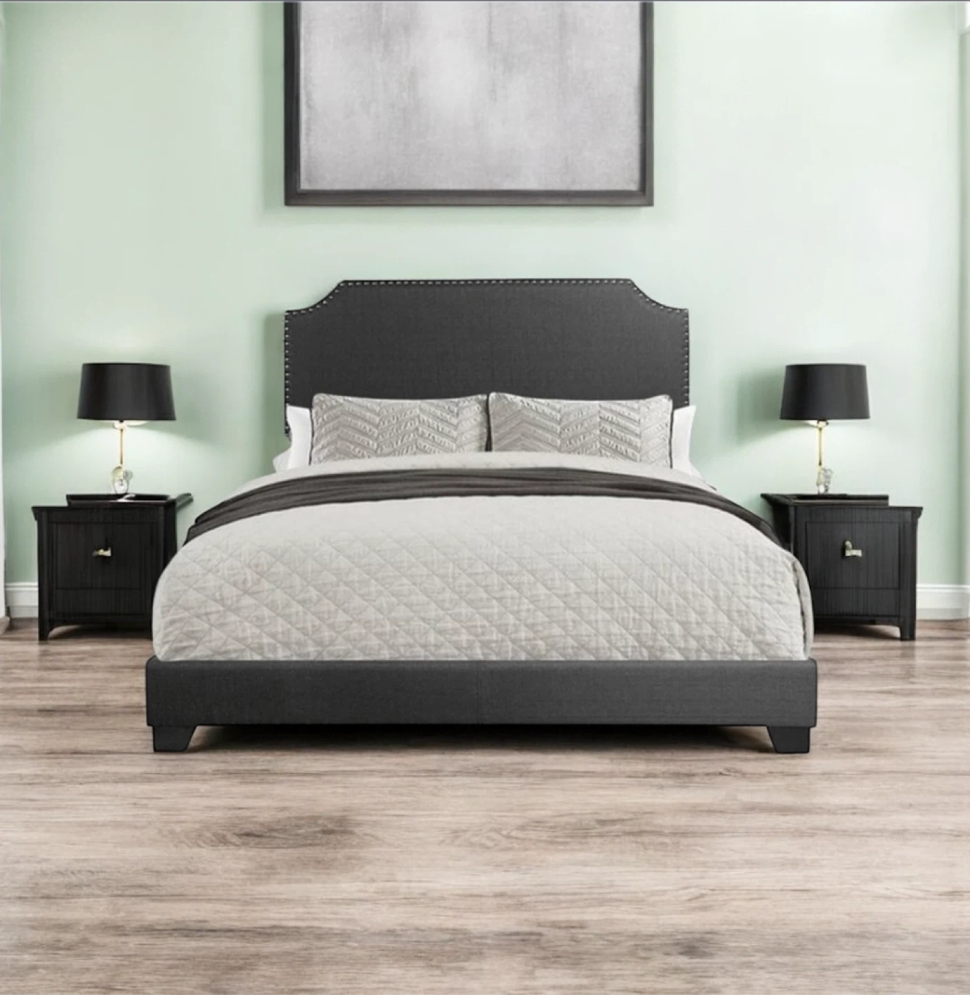 New King Size Grey Upholstered Bed * New In The Box for Easy Transport in Your Vehicle- In Excellent Condition! * Dimension: 87 1/8" x 80 1/8" x 49 5/8"H * Box Dimensions: 82.87” L x 28.74” W x 4.33” H * Mattress Not Included * Verified Trusted Seller / Read/ See My Reviews! Follow Me For Amazing Deals Listed Daily!