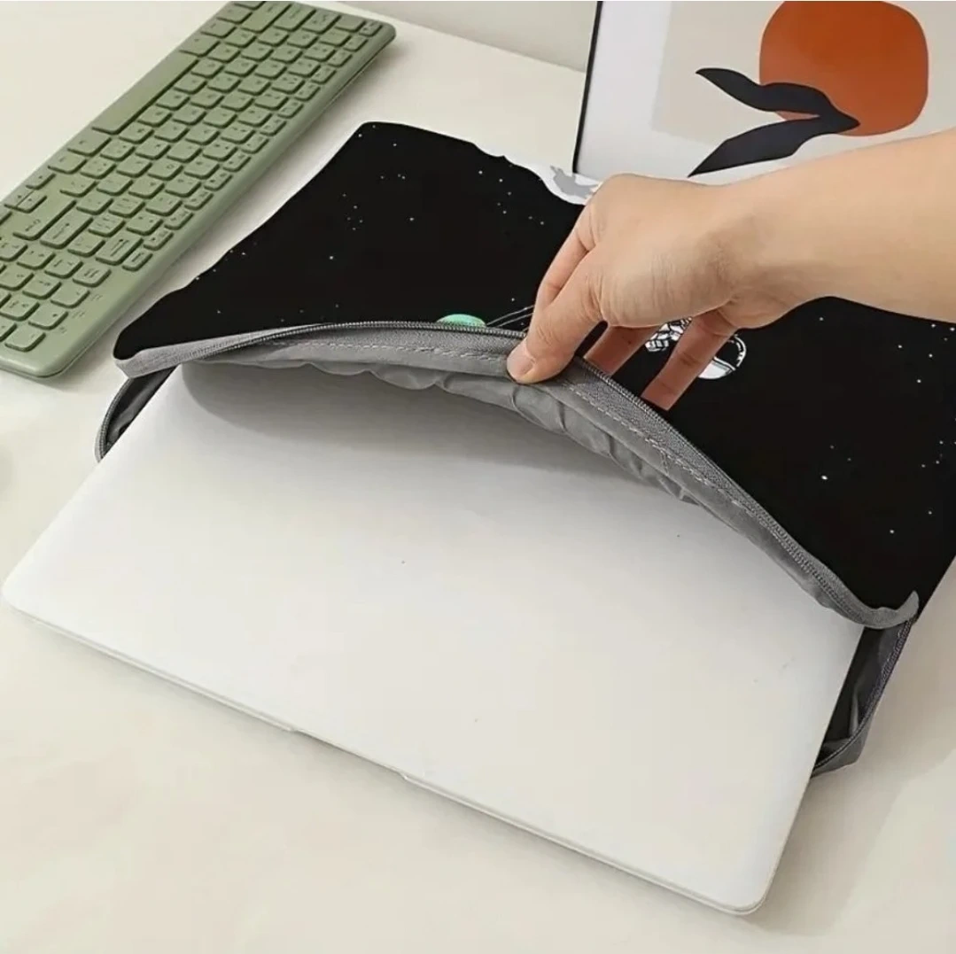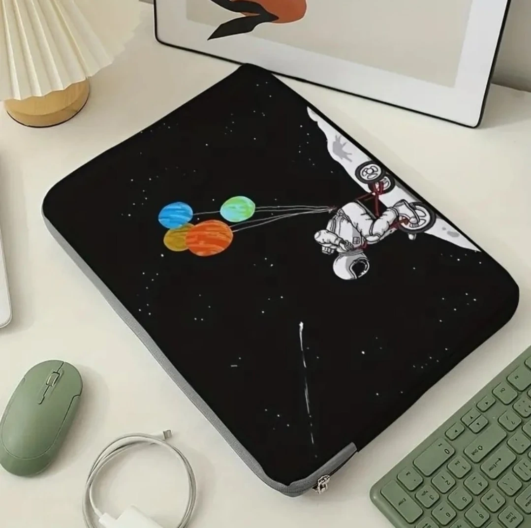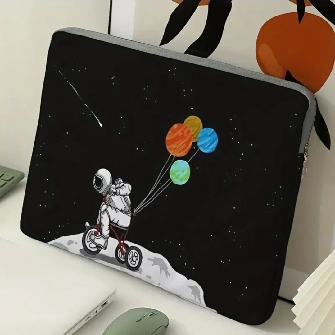 65New Laptop Black Bottom Bicycle Astronaut Zipper Cover Laptop Bag Astronaut Riding on a Bicycle Soft Bag Excellent Condition