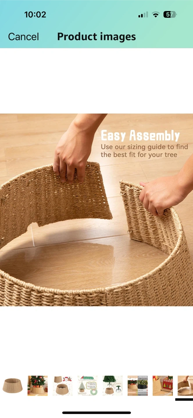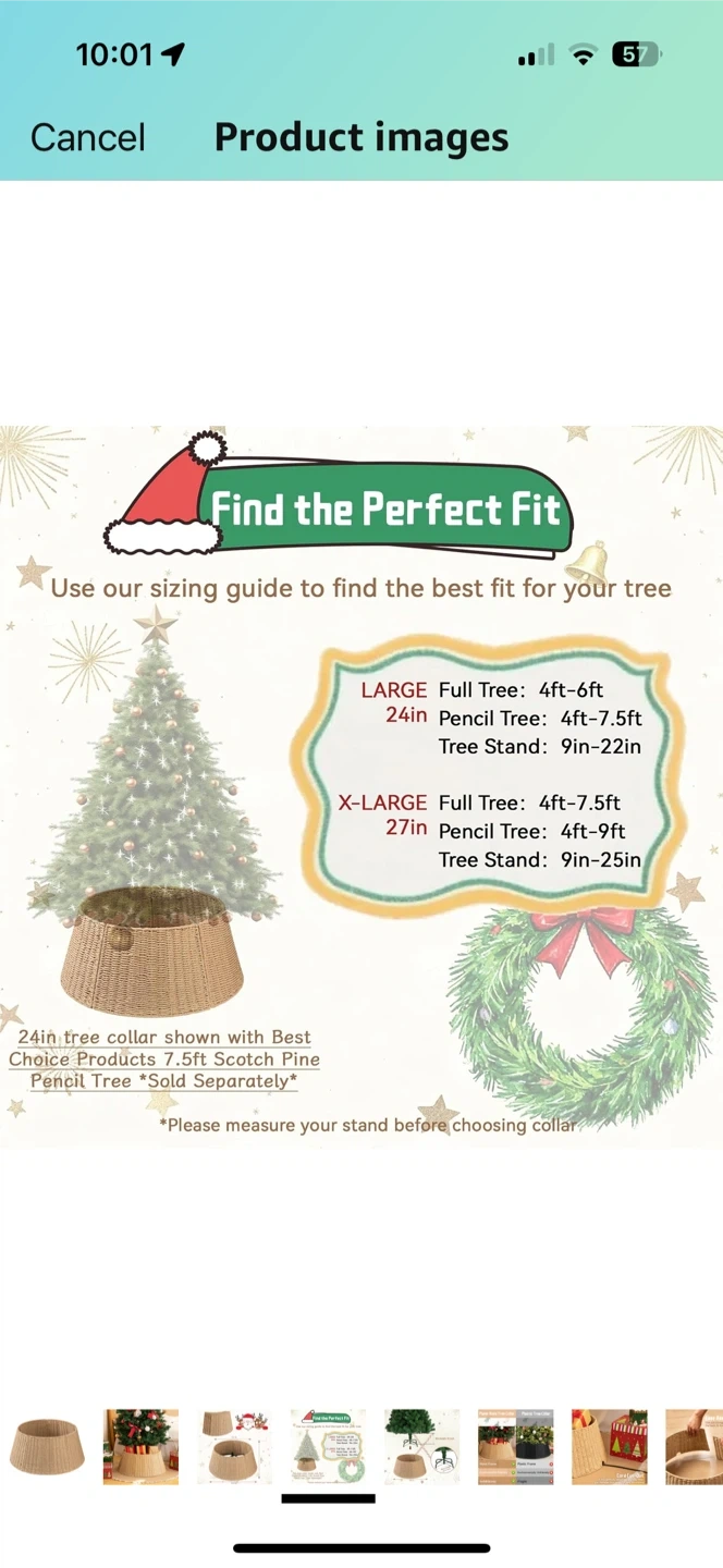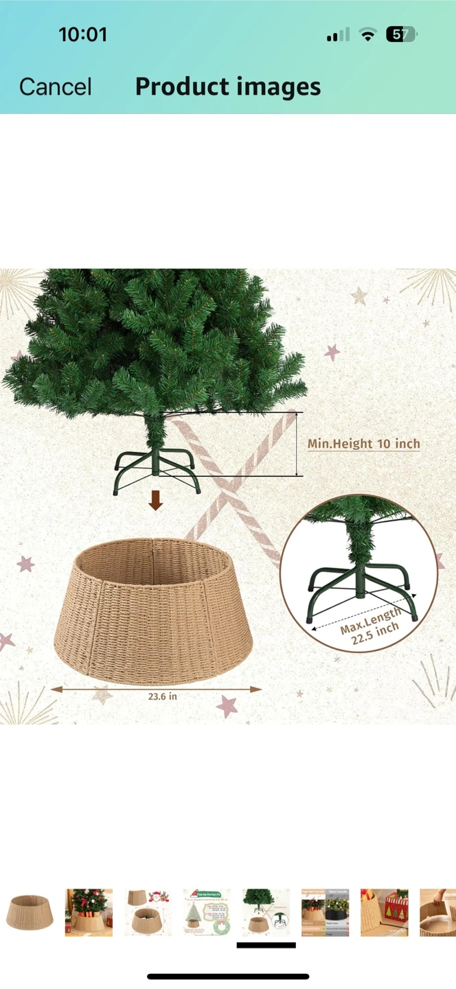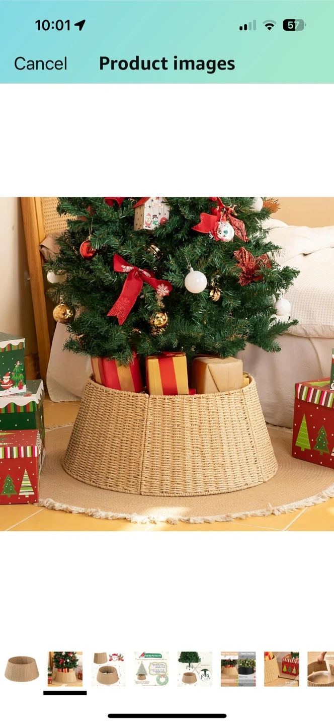 Selling a large, natural-colored woven Christmas tree collar. It's in great condition and comes with its original box. The dimensions are approximately 23.6 inches in diameter and 9.85 inches in height. This collar is perfect for adding a rustic touch to your holiday decor!