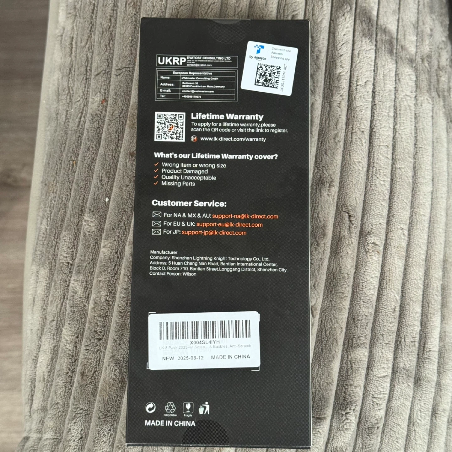 Selling a new LK 3 pack screen protector. It is anti-scratch and protects against bubbles. Manufacturing date: 2025 August 12