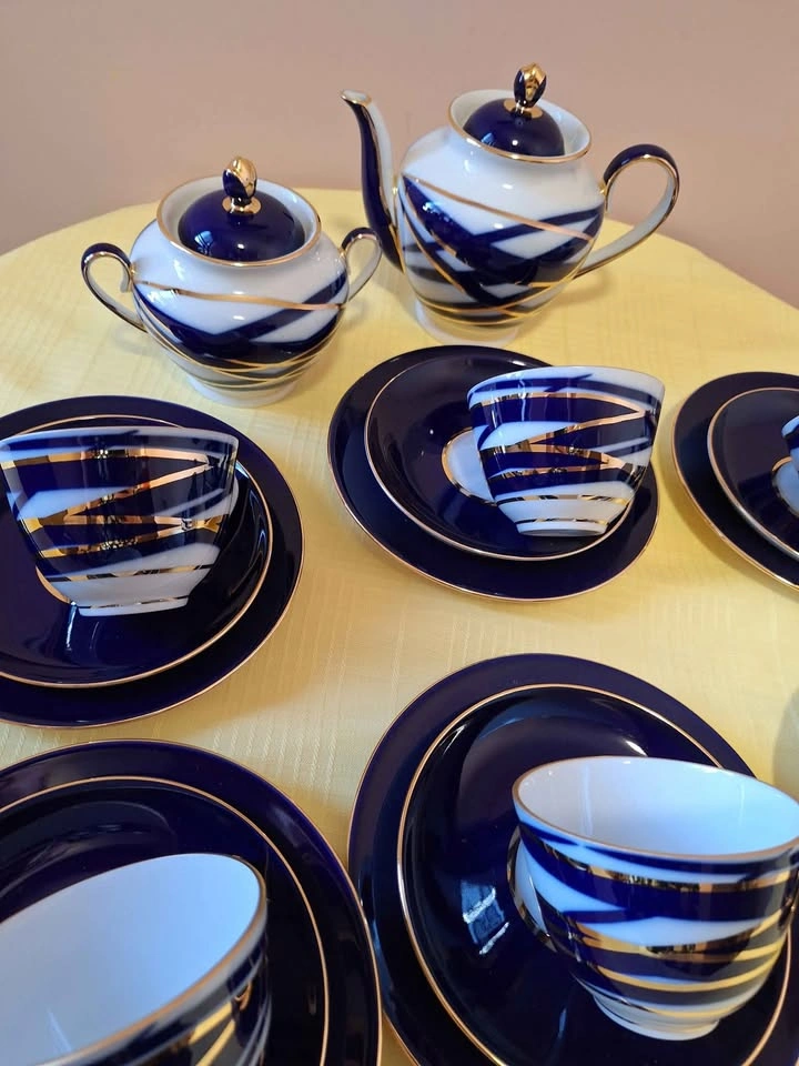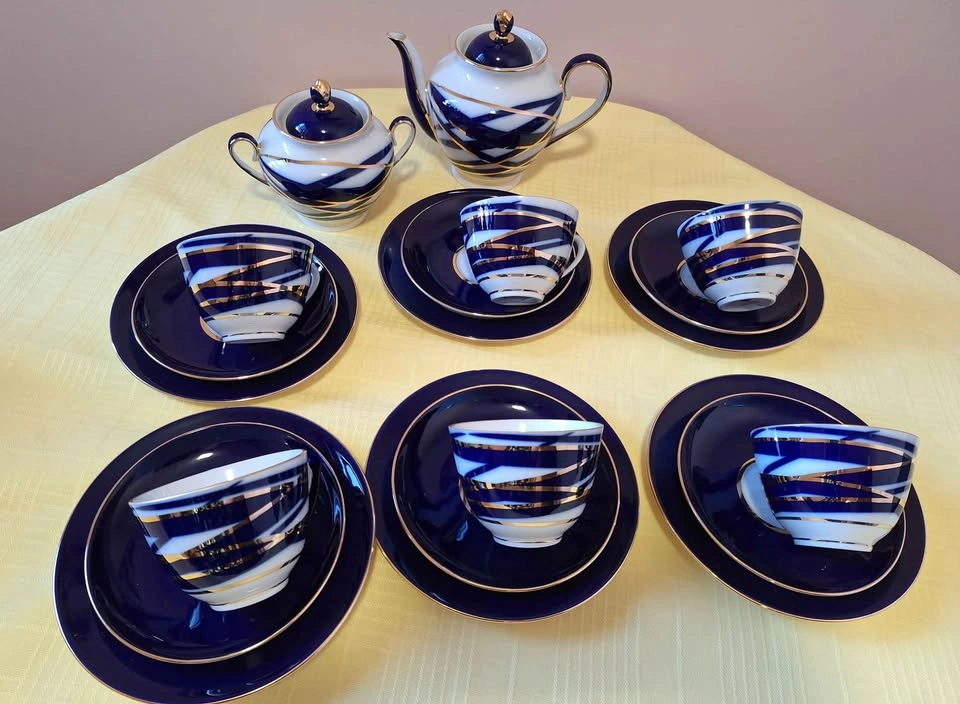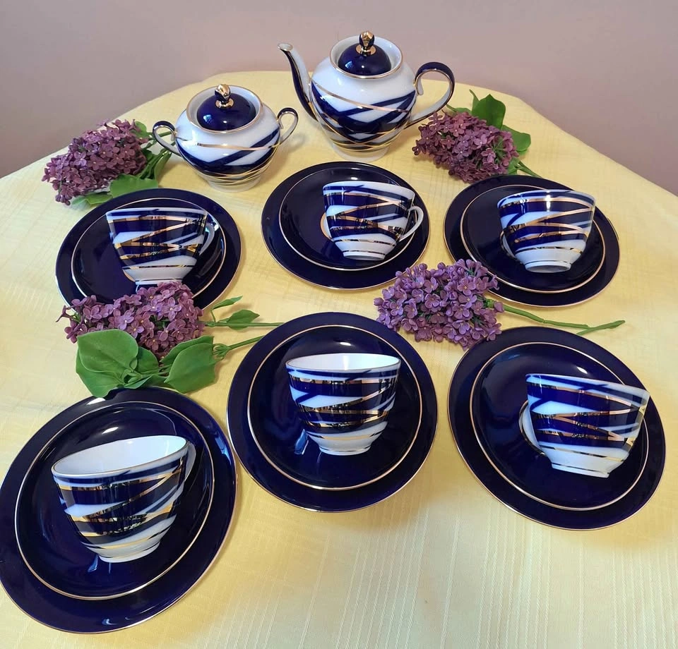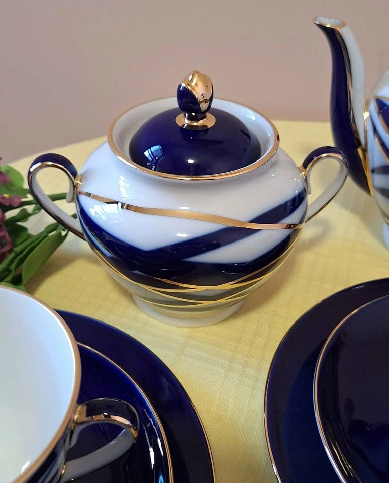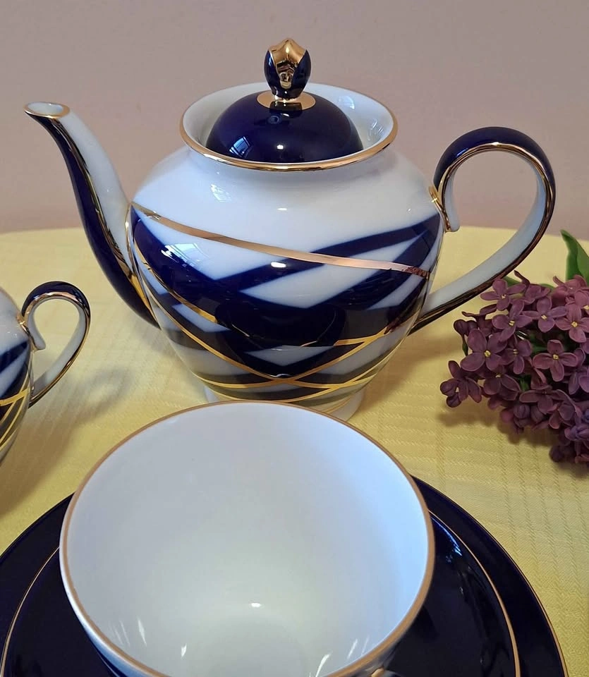 Make tea drinking a special occasion with our beautiful Lomonosov Imperial Porcelain Tea Set Spring Cocoon. It will make your teatime more enjoyable and unforgettable! Lomonosov Porcelain Tea Set 20 pc for 6 includes: 6 Tea Cups, 6 Saucers, 6 Dessert Plates, 1 Teapot, 1 Sugar Bowl. Items measure: Tea Cup measures L 4.3", W 3.7", H 2.7", capacity 7.8 oz/230 ml; Saucer measures D 5.7", H 0.9". Cake plate measures: D 7", H 0.79". Teapot measures: L 7.9", W 5", H 6.3". Capacity 27.1oz/800 ml; Sugar Bowl measures: L 6.3", W 4.3", H 4.9". Capacity 13.5 oz/400 ml; Features: The Tea Set is HAND PAINTED, hand wash is recommended. The original Lomonosov Factory logo is on the bottom of each piece. Made in Russia by the Imperial Lomonosov Porcelain Factory Material: hard paste porcelain