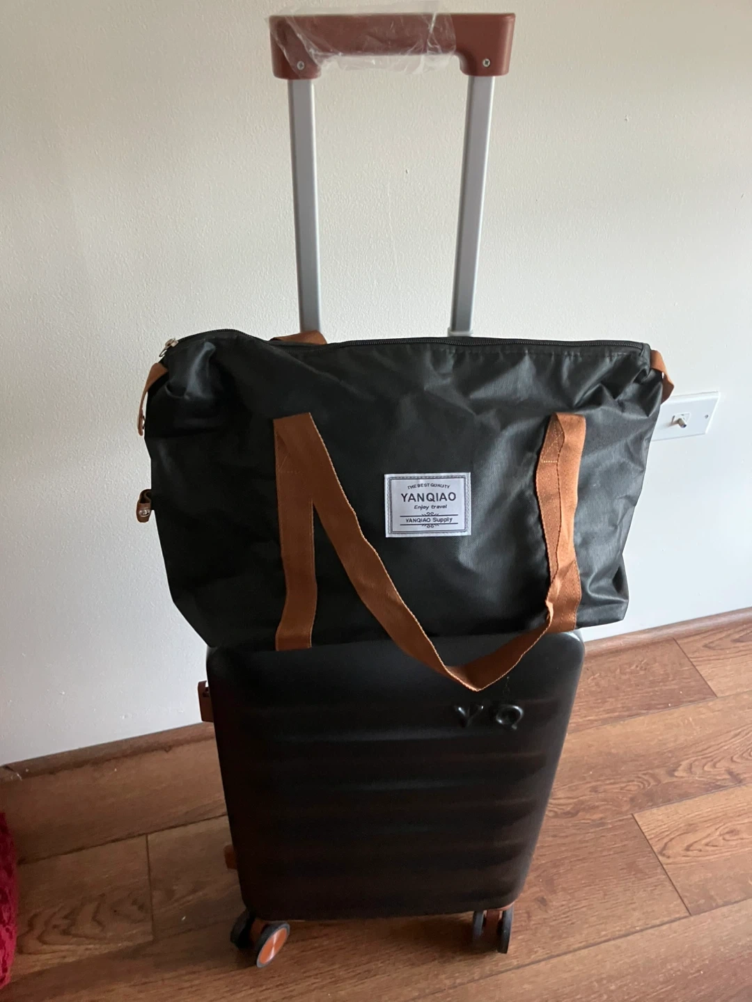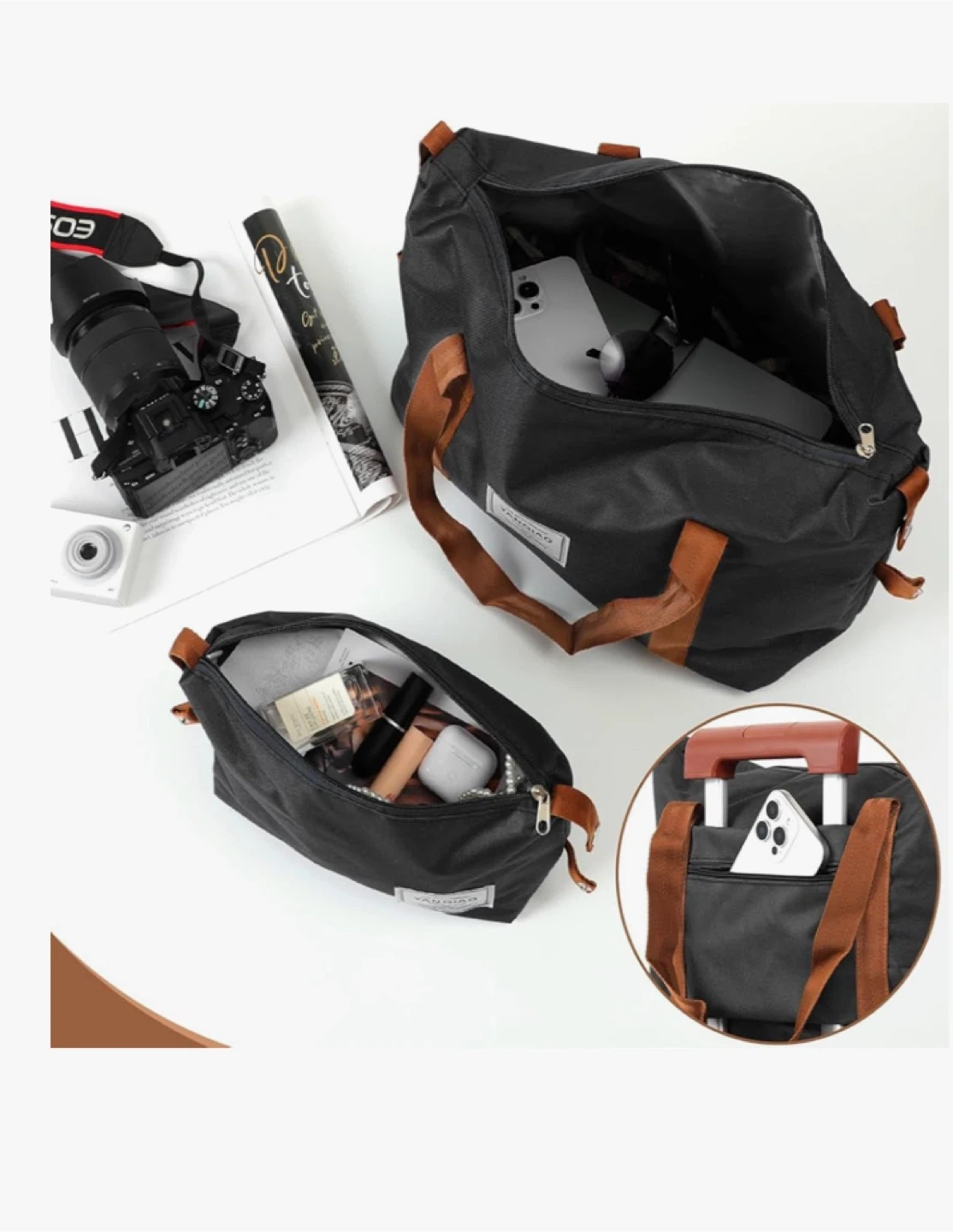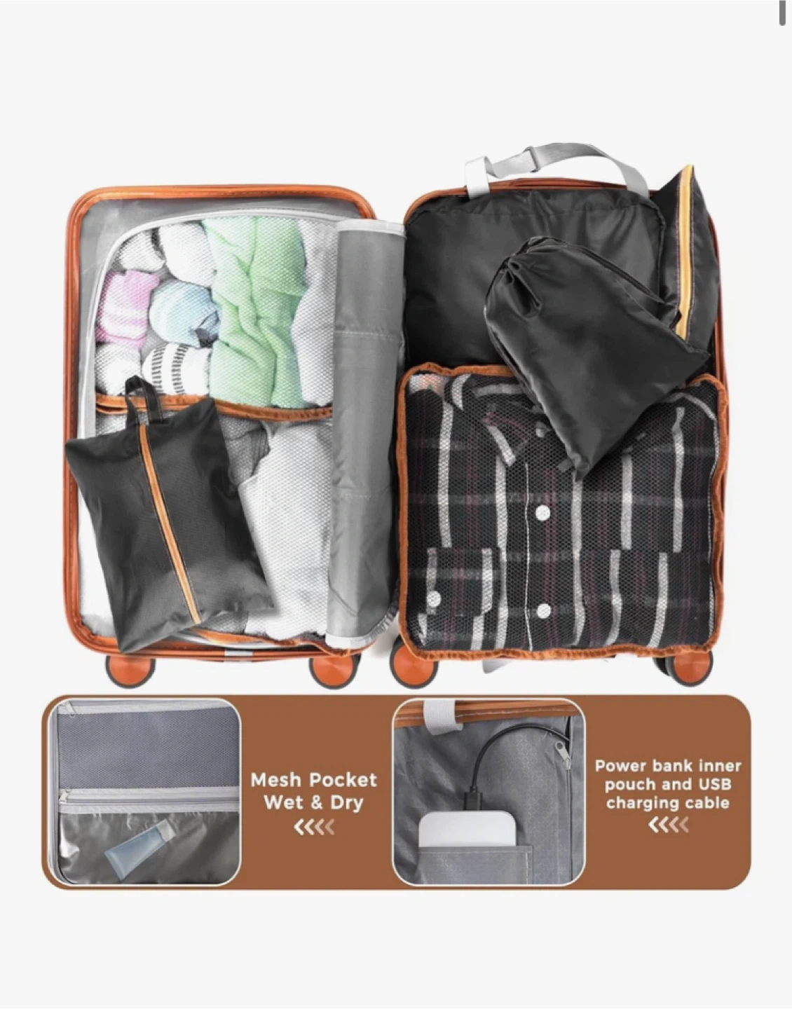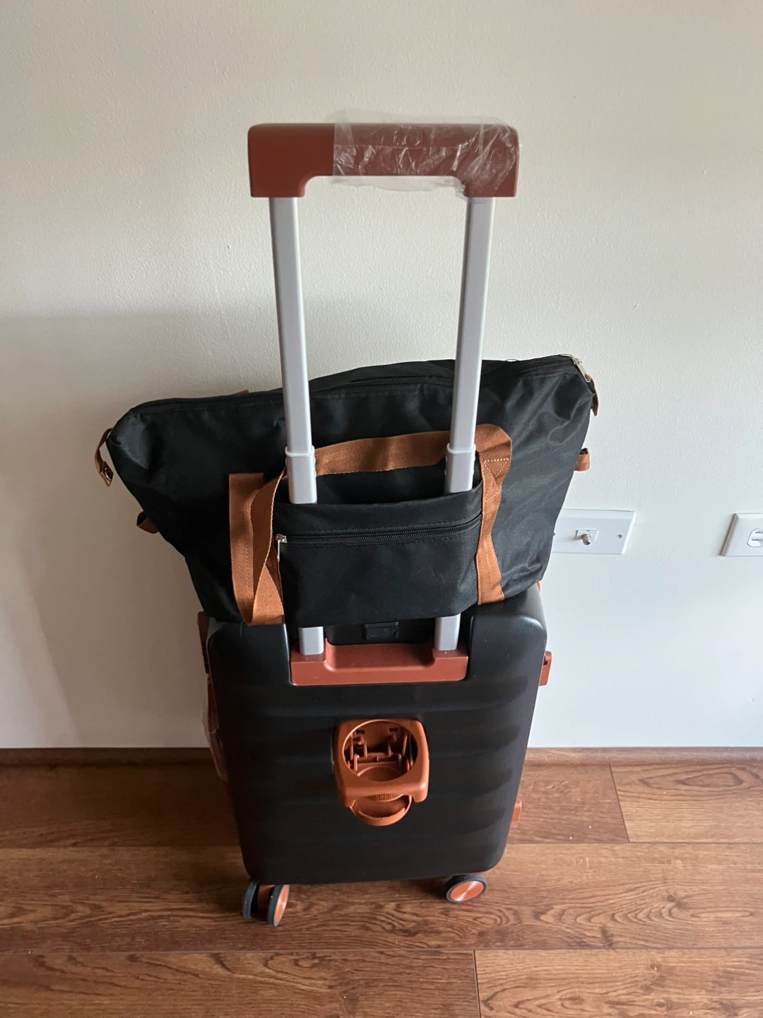 20” Suitcase Set 3 Pcs, Airline Certified Luggage, Carry-on Luggage with Cup Holder and USB Port, Suitable for Business, Traveling (Luggage + 2 Travel Bags, Black) LUGGAGE SET: Includes 20-inch carry-on suitcase, 2 x travel bag (big bag + small bag), designed for travelers, easily meet all kinds of travel needs. Airline certified size, no need to check in, make your journey worry-free. GUARANTEED SECURITY: Equipped with a combination lock to provide extra security for your luggage. Internal zipper compartment and elastic band design, multi-compartment layout ensures that each item has its own place, making your luggage neatly organized and easy to find. DURABLE AND WATERPROOF: The luggage is made of ABS+PC material, combining lightweight and sturdy, durable and long-lasting. The travel bag is made of polyester fabric, with wet and dry pocket design inside to keep your belongings dry and easier to organize. LESS BURDENING: Equipped with 4 360-° swivel wheels for smooth movement and improved ride comfort. Passed drop load test and wheel rolling test to ensure the luggage can be used reliably in various environments. Telescopic handle design for easy maneuverability and reduced arm pressure for long time use. ENHANCED EFFICIENCY: The travel bag is designed with a trolley sleeve that attaches to the retractable handle of the suitcase, enhancing travel convenience. The seven-piece organizer bag makes your luggage storage more neat and orderly, makes full use of luggage space, and makes every trip easier and more efficient.