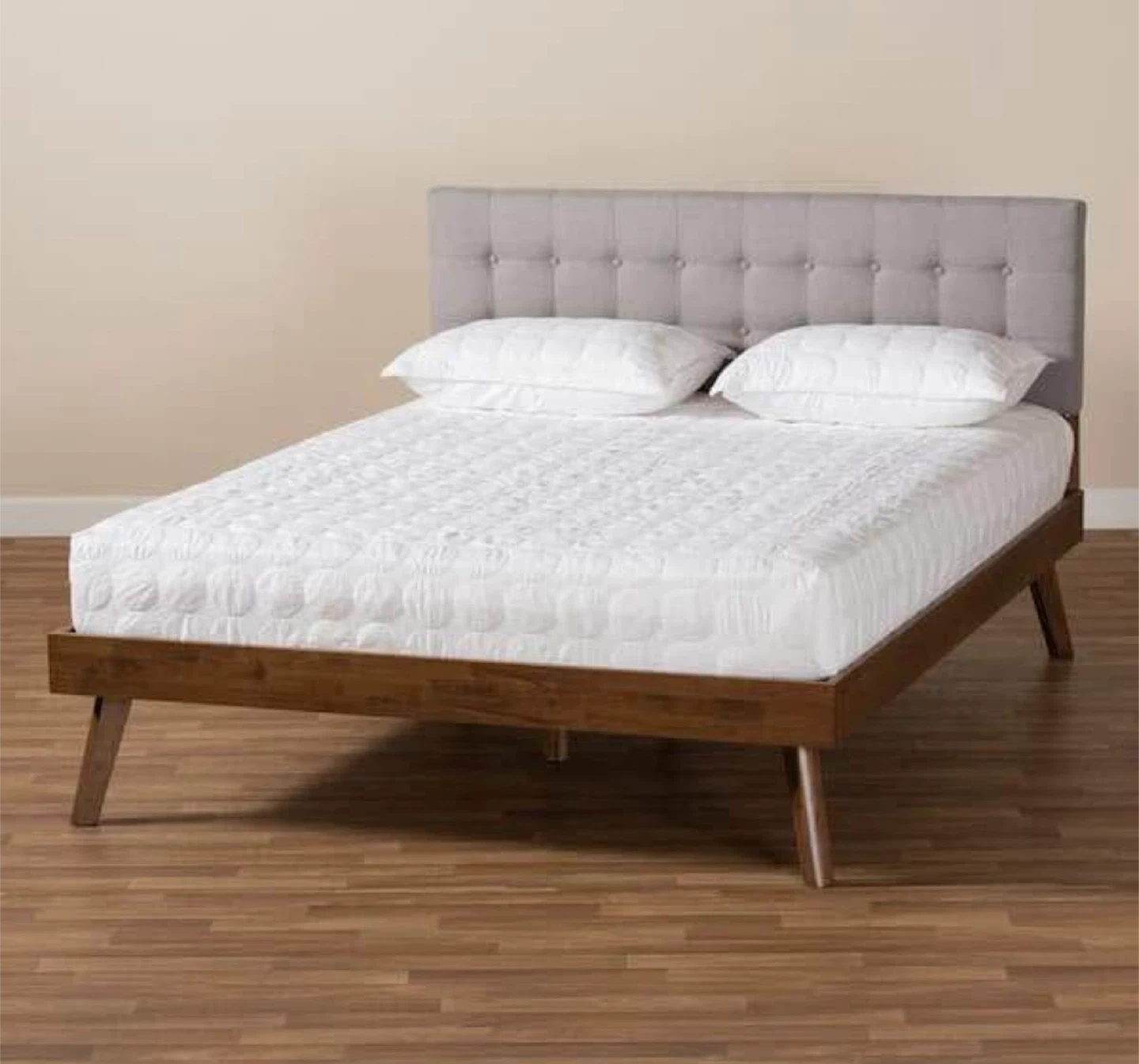New Full Size Beige Upholstered Bed