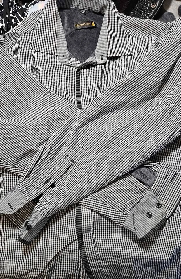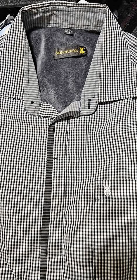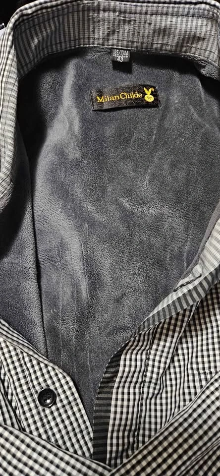 81New Milan childe men's black white pattern insulated dress shirt size 43 MSRP:$589