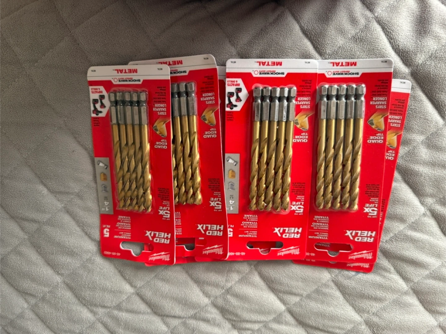 I'm selling a brand new set of Milwaukee SHOCKWAVE Metal drill bits! These are titanium drill bits with RED HELIX design for up to 5x life. They feature a QUAD EDGE tip that stays sharper longer. Perfect for metal drilling