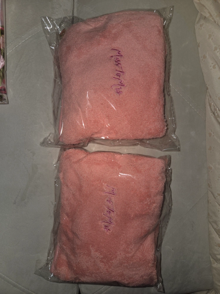 10I have 2 new "Miss to Mrs." hair towel wraps. They are very soft pinkish-peach color and still in their original packaging! 2x $10 each.