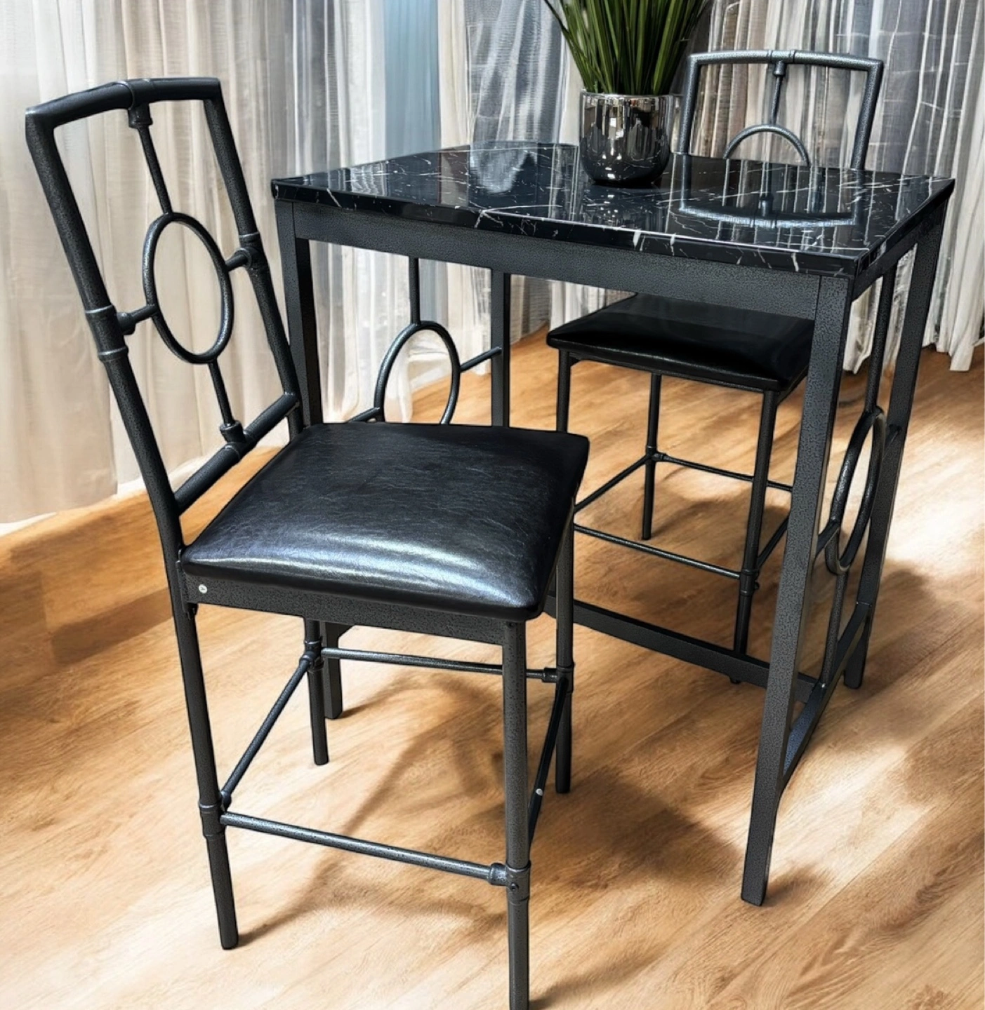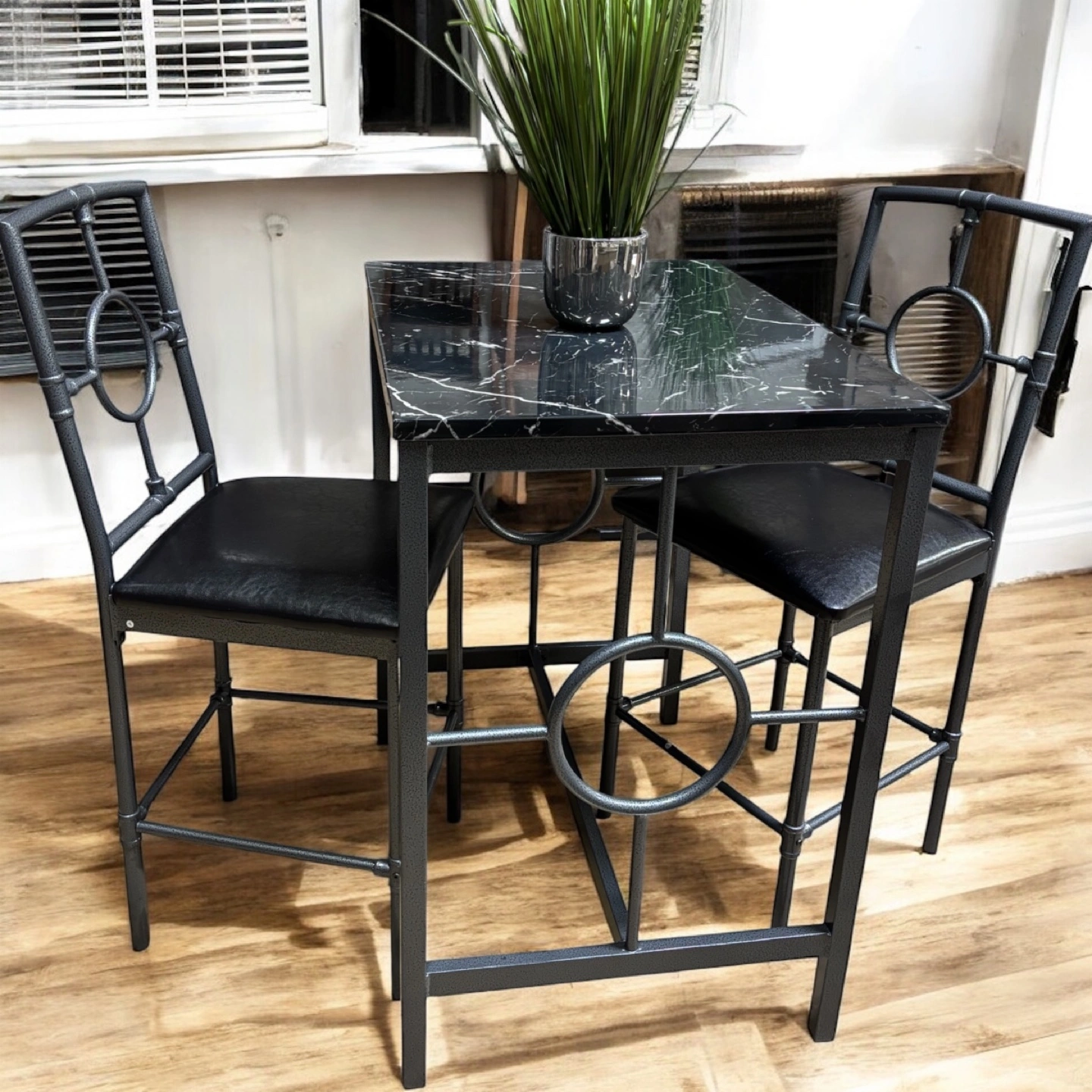 New Modern 3 Piece Counter Height Pub Table Set - Space Saver Trusted Seller / Read My Reviews - Brand New - In Great Condition Table Dimensions: 36” H x 32” L x 24” W Chair Dimensions: 17.5” W x 19.5” D x 41.3” H