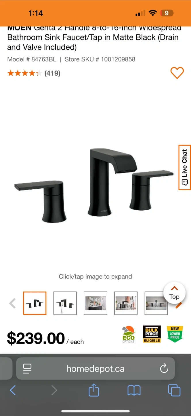 Selling a brand new Moen Genta 84763BL widespread bathroom faucet in matte black finish! It's still in the original box and has never been used