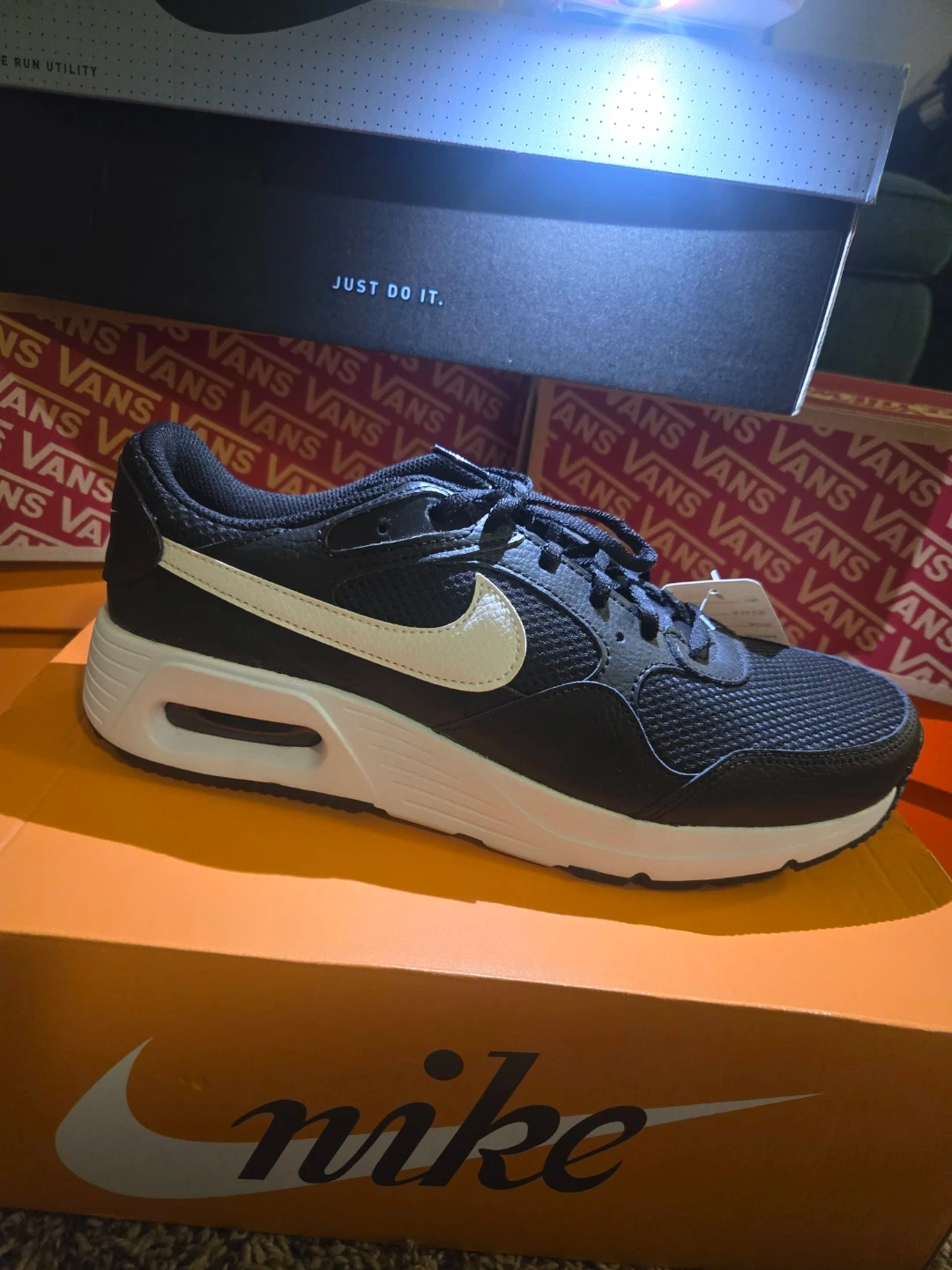 10Selling a brand new pair of Nike Air Max SC sneakers in black and white! These shoes are in excellent condition and come with the original box. The classic design and comfortable fit make them perfect for everyday wear. "Just Do It."