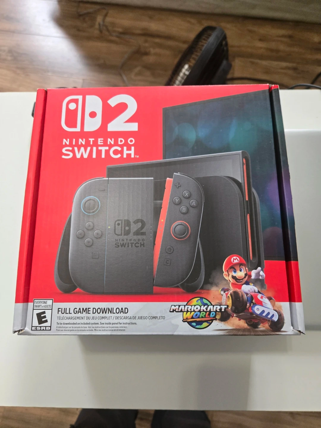 146Selling a brand new Nintendo Switch 2 model! This is the special Mario Kart bundle. It comes with everything in the original box, including the console, dock, Joy-Cons, and all the necessary cables. Ready for a new home!