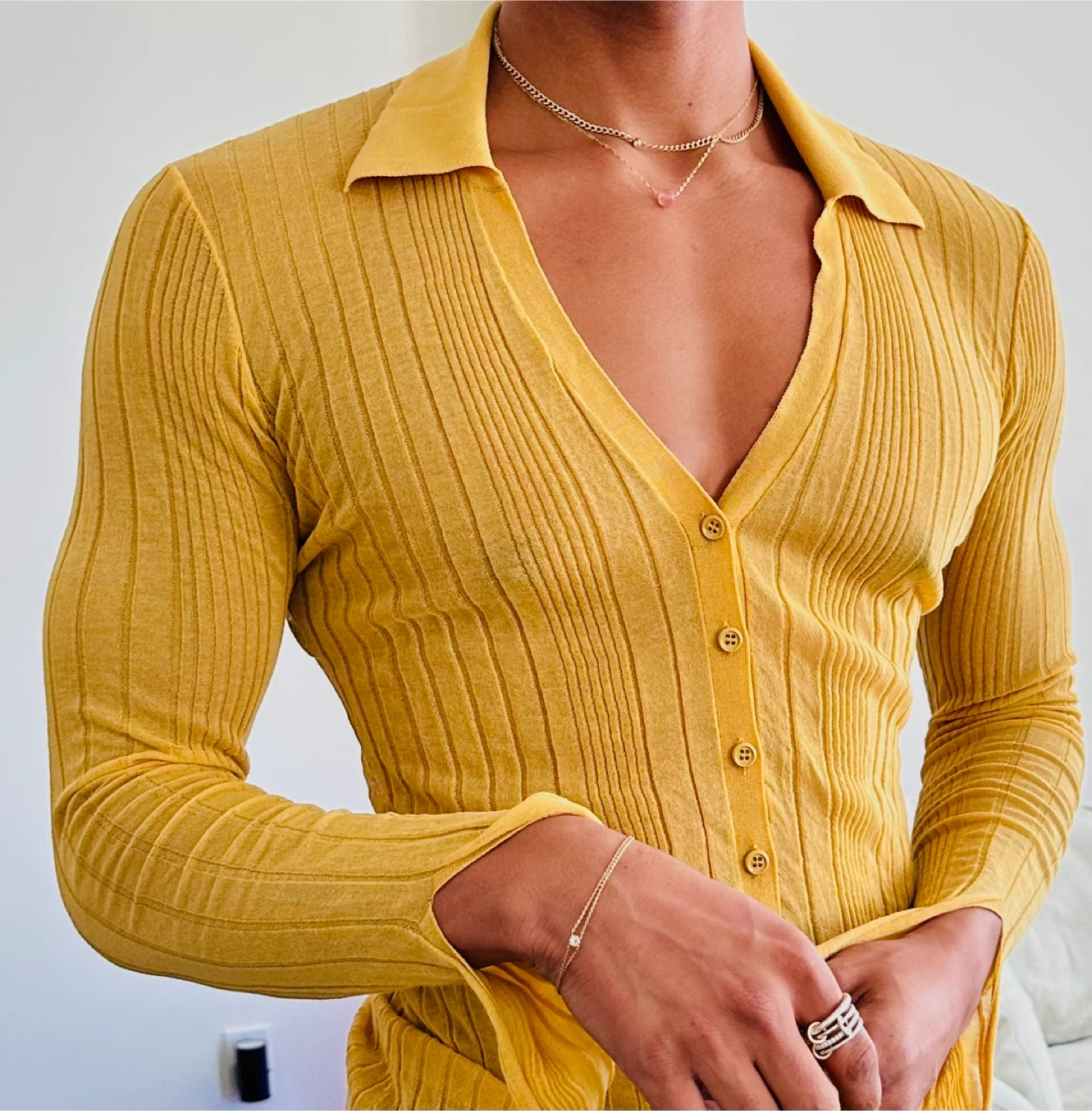 65Selling a cute Pinko knit top in a sunny yellow color! It's a size small and features a ribbed texture. Perfect for adding a pop of color to your wardrobe. Worn one and didn’t like fit. Semi sheer best work over a bra-let or tank for coverage.
