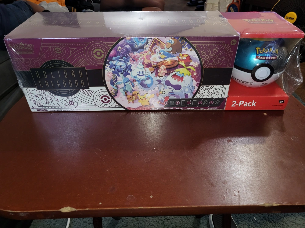 I'm selling a brand new Pokémon Holiday Calendar along with a 2-pack of Poké Ball Tins! This set includes 8 promo cards, 6 booster packs, 7 fun packs, 2 coins, and 2 sticker sheets. Tins Poke Ball includes 3 TCG Booster packs and 2 sticker sheets. Perfect for any Pokémon fan!