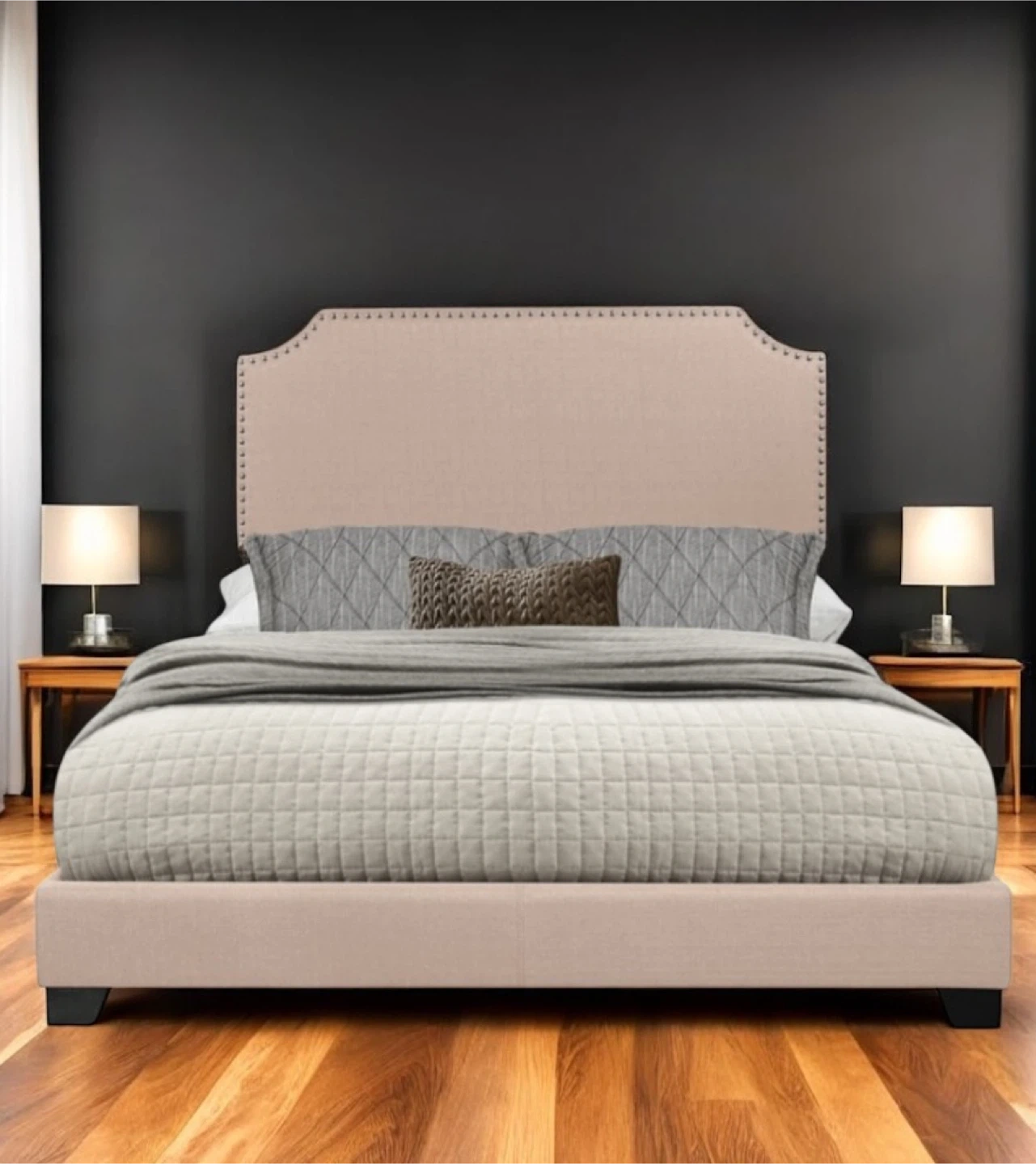 New Queen Size Beige Upholstered Bed