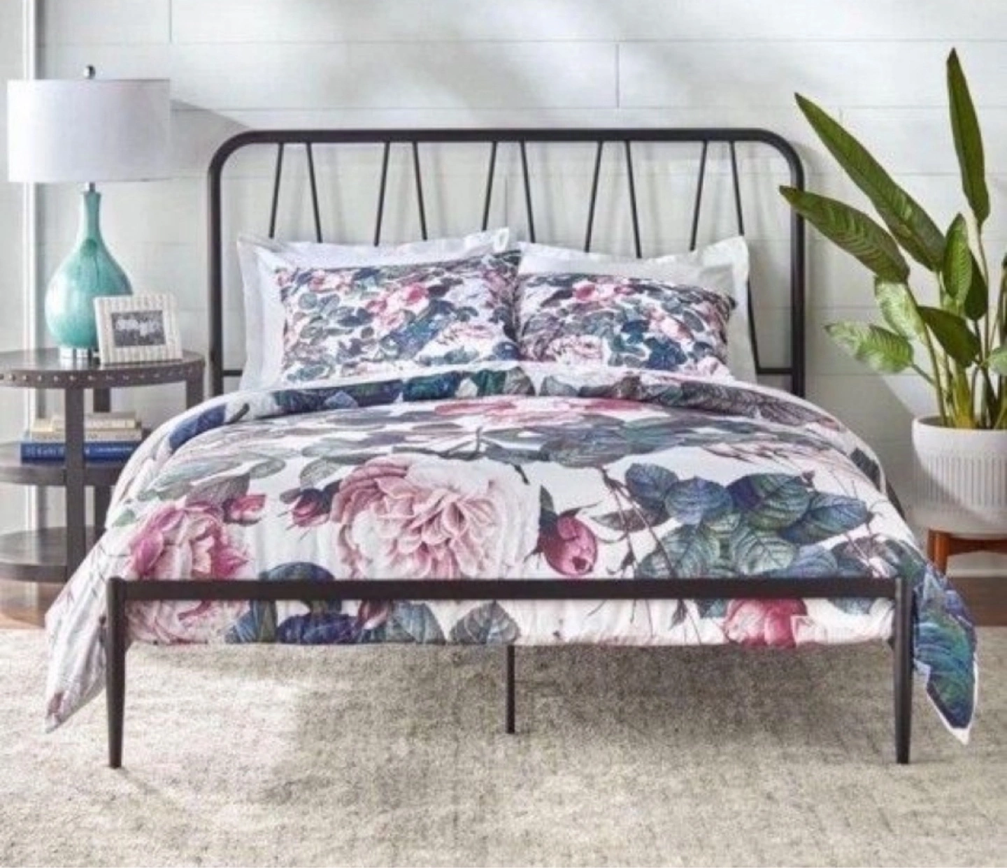 New Queen Size Modern Geometric Metal Bed Brand New In The Box - In Excellent Condition - Read My Reviews Dimensions: 48.4” H x 63.5” W x 85.2” D Footboard: 22.6” H 15.3” floor clearance Floor clearance at sides: 9.4”