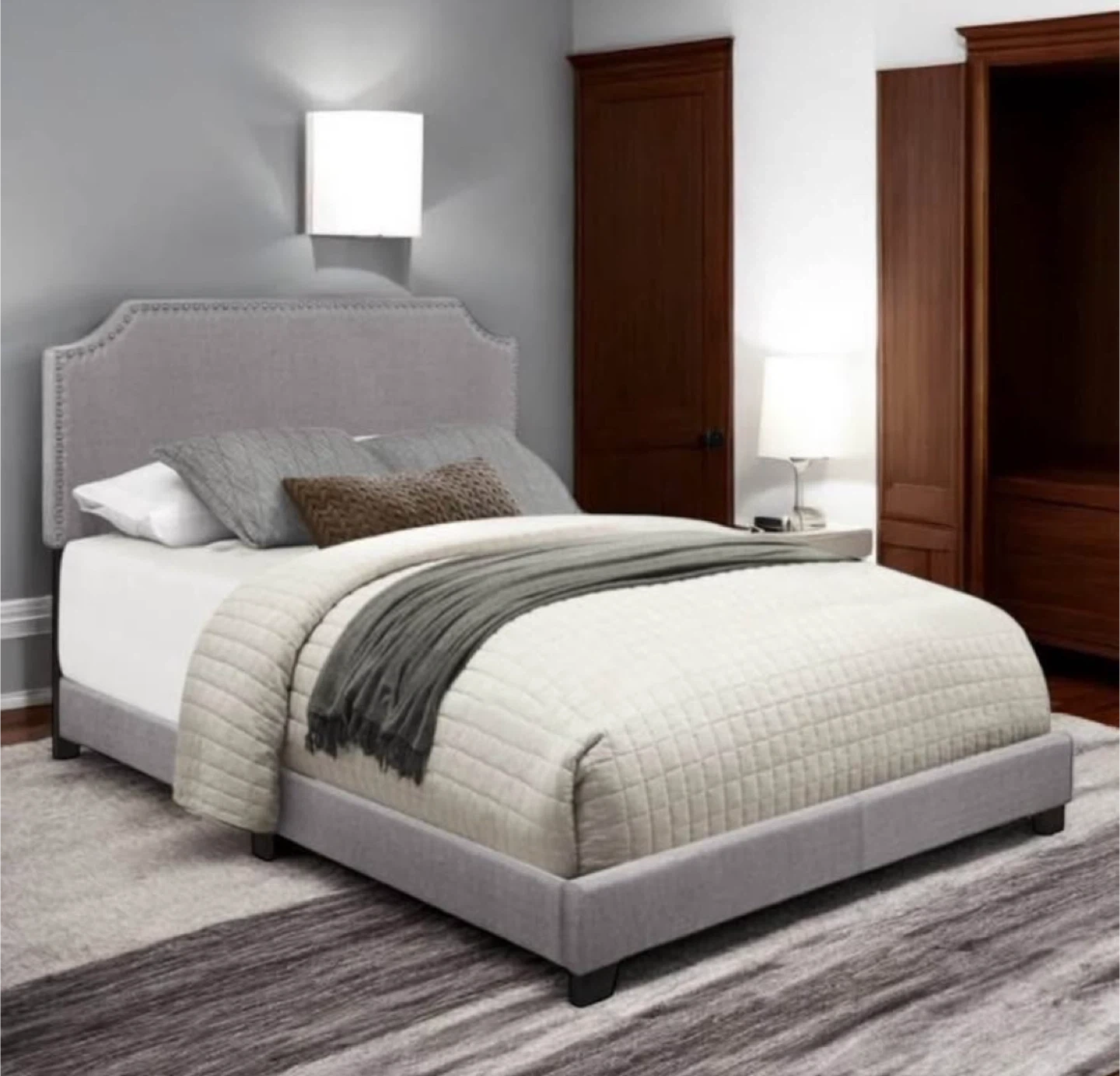 172New Queen Size Light Gray Upholstered Bed * New In The Box for Easy Transport in Your Vehicle- In Excellent Condition! * Dimension: 87 1/8" x 64 3/8" x 49 5/8"H * Box Measurements: 66.92” L x 28.74” D x 4.33” H * Mattress Not Included * Verified Trusted Seller / Read/ See My Reviews! Follow Me For Amazing Deals Listed Daily!
