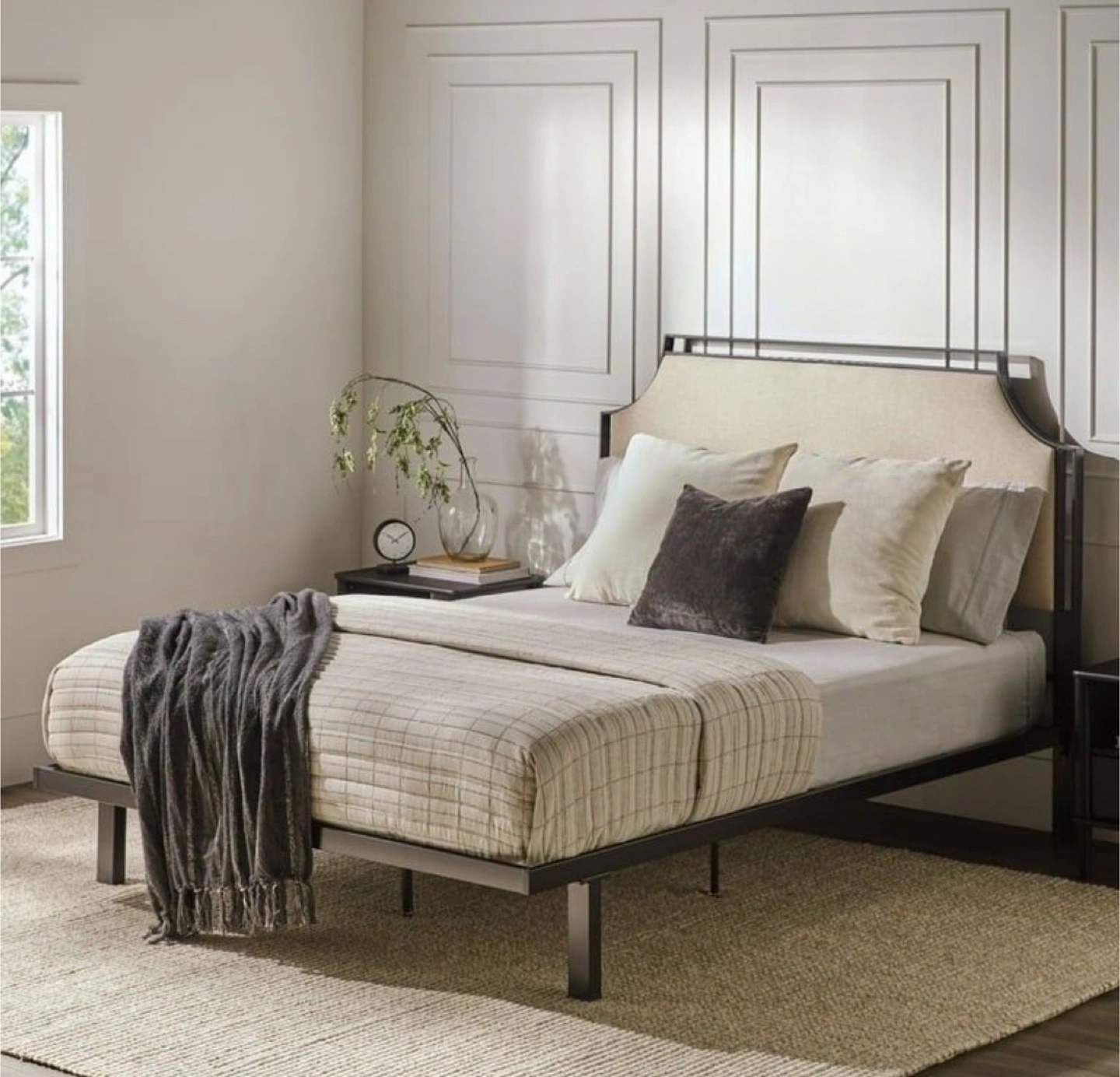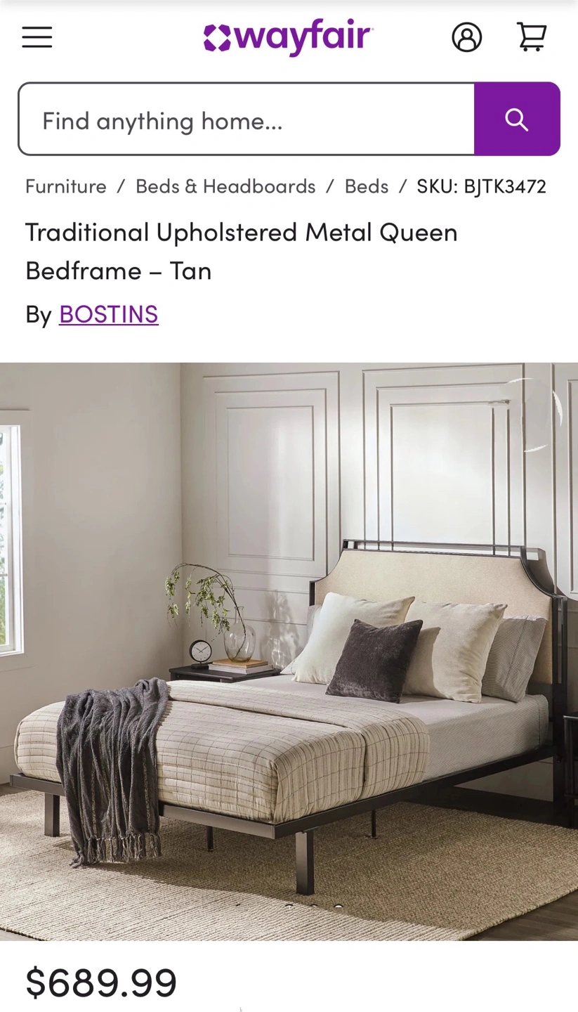 New Queen Size Traditional Upholstered Bed * New in the Box/Excellent Condition * Dimensions: 49.25'' H X 63.13'' W X 83.13'' L * The fire-resistant fabric provides an additional layer of safety, ensuring that you and your family can sleep soundly without worrying about potential hazards. This feature adds peace of mind and enhances the overall security of your bedroom. * Quick 15-minute assembly time, you can set up this bed with ease. The simple and straightforward assembly process means you can start enjoying a restful sleep almost immediately, without the hassle of complicated instructions or tools. * Curved corners give the bed a softer, more inviting look. This design element not only enhances the aesthetic appeal but also adds a touch of elegance and sophistication to any bedroom, making it a standout piece of furniture. * The fully removable upholstered insert allows for easy cleaning and maintenance. You can keep your bed looking fresh and new by simply removing and washing the cover, which is especially convenient for those with allergies or pets. * Trusted Seller / Read/ See My Reviews! Follow Me For Amazing Deals Listed Daily!